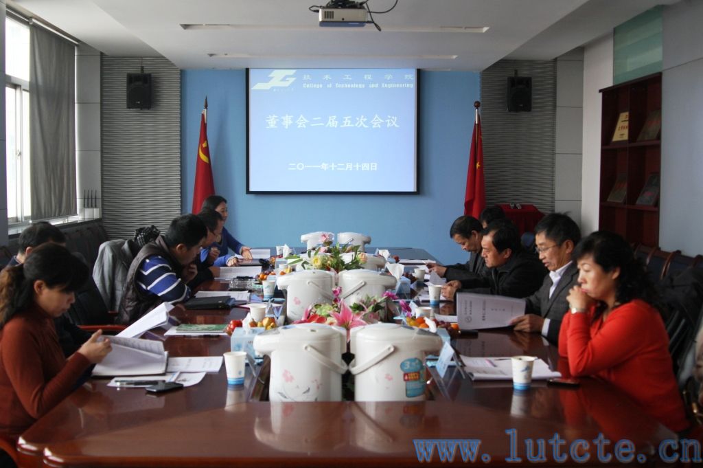 2011年12月14日下午15:00,学院董事会二届五次会议在砺志楼A区402会议室召开,出席本次会议的董事有王晓明、王智平、高君、王瑞祥、康龙、邱平 、张忠赓,监事会成员蔡颖、姜晓华列席了本次会议。会议由学院董事长王晓明主持。