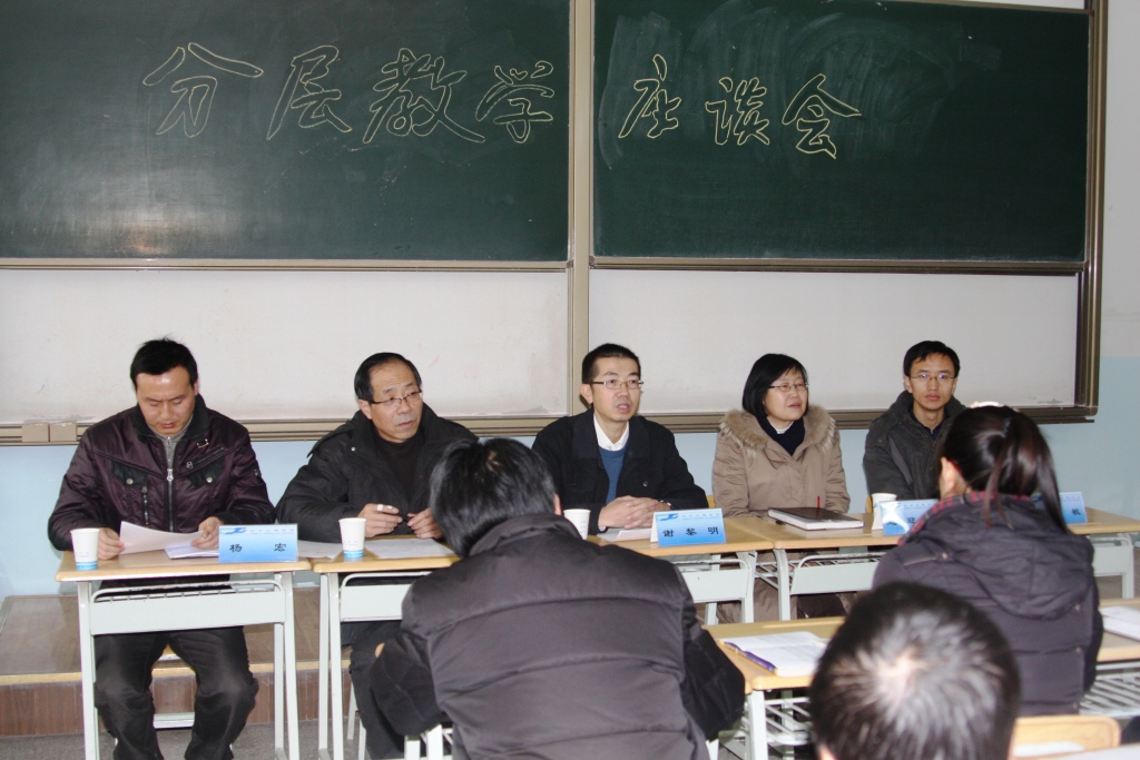 2011年1月5日,学院组织召开了分层教学座谈会。学院副院长谢黎明、人文体育部主任赵迎新、学生处副处长朱明敏、理学部副主任杨宏及分层教学强化班全体辅导教师及学生参加了会议。会议由教务处处长任宗义主持。
