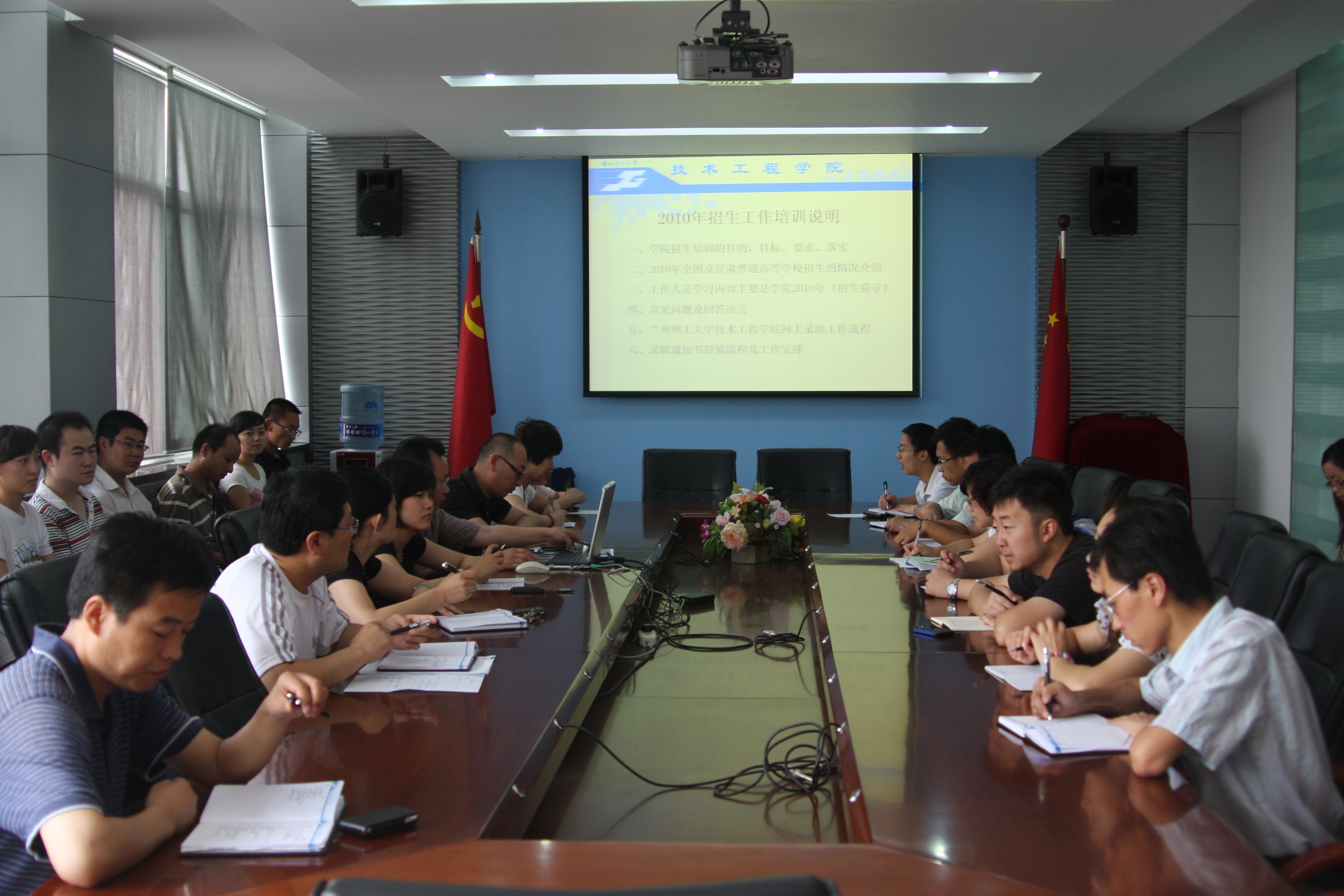 随后,招生就业处王家湘老师就具体的工作要求进行了培训。他首先说明了学院招生培训的目的、目标和要求,介绍了2010年全国及甘肃普通高等学校招生情况,就招生过程中工作人员遇到的常见问题及回答语言、网上录取的工作流程、录取通知书封装流程及工作安排等作了详细的说明。