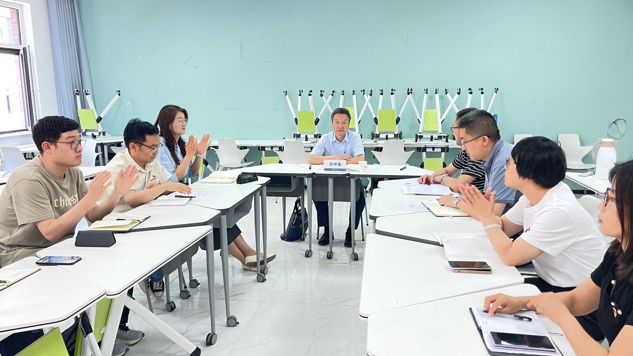 为深入贯彻《中共beat365英国官方网站委员会开展深入贯彻中央八项规定精神学习教育工作方案》,根据《中共beat365英国官方网站委员会关于组织开展庆祝中国共产党成立104周年系列活动的通知》的有关部署,学校党委书记周怀春于2025年6月11日为马克思主义学院直属党支部全体党员教师开展题为《中央八项规定精神与思政课的深度融合》的“思想铸魂·强基固本”专题党课。