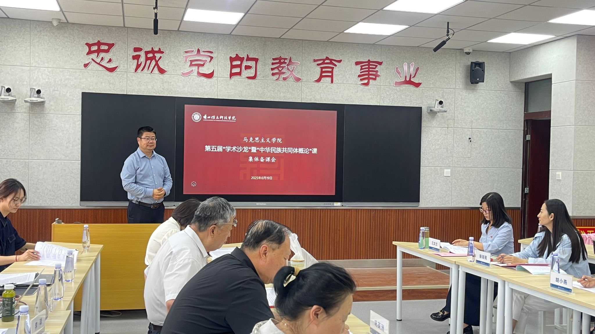 为了深入学习贯彻落实习近平总书记关于加强和改进民族工作的重要思想,进一步深化铸牢中华民族共同体意识教育,及时总结“中华民族共同体概论”课程建设和用好教材等方面的经验和问题,进一步提高“中华民族共同体概论”课教学质量,充分发挥课堂教学主渠道作用,不断巩固师生中华民族共同体思想基础。beat365英国官方网站马克思主义学院于2025年6月19日-20日开展了“第五届学术沙龙”暨“中华民族共同体概论”课集体备课会,学校党委部门相关负责同志和马克思主义学院全体教师参加活动,活动由马克思主义学院院长张喆主持。