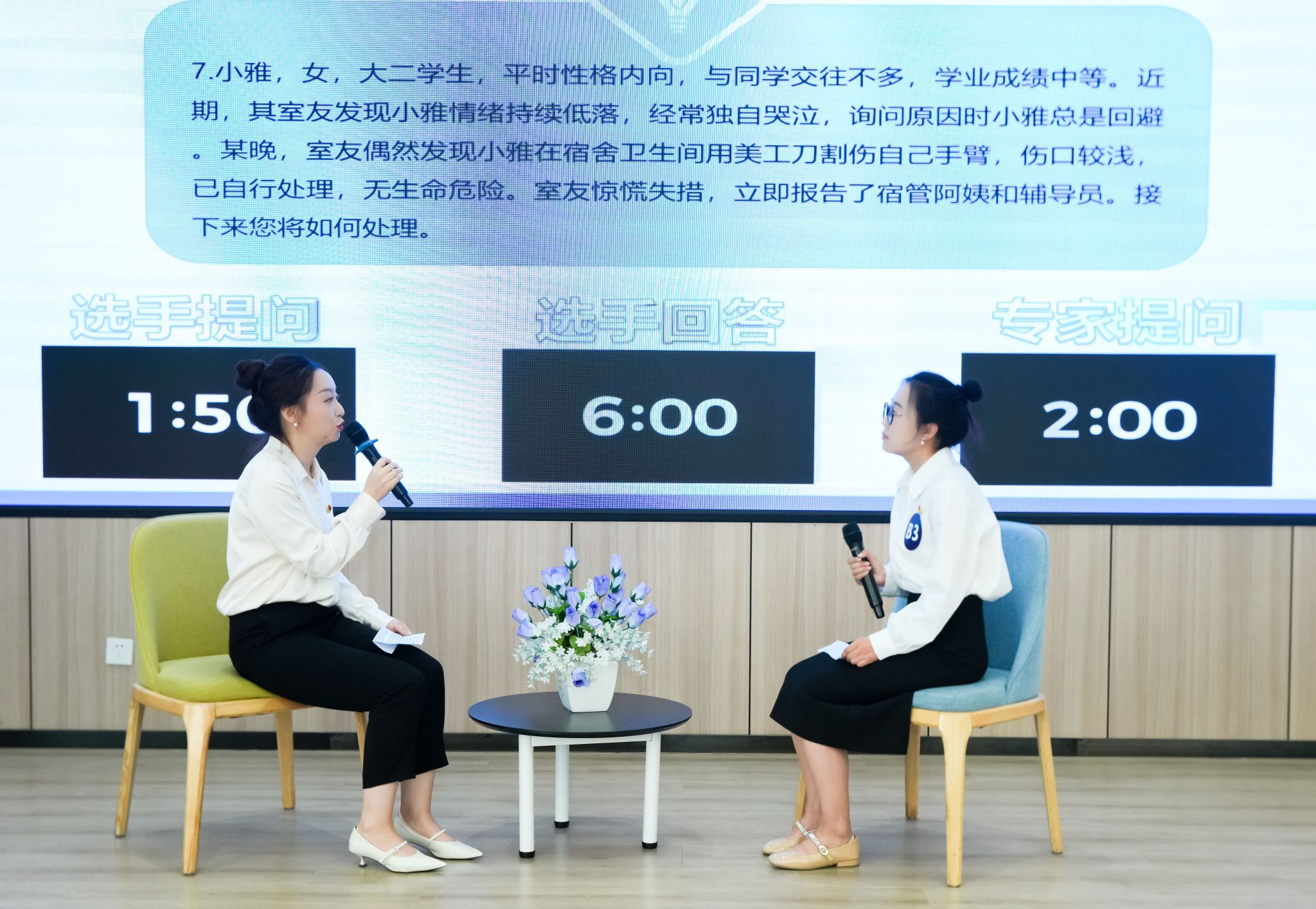 决赛包括案例研讨和谈心谈话两个环节,10位决赛选手针对选题科学研判、冷静分析、从容应对,表现优异,以深厚的理论功底、扎实的业务能力和稳定的现场发挥,充分展示了学工队伍昂扬的精神风貌和良好的综合素养。经过激烈角逐,朱嘉杰获得一等奖,申棕鑫、姚文彬获得二等奖,张青、杜佳丽、田萌获得三等奖,畅燕、张文利、王嘉誉、丁丽春获得优秀奖,健康工程学院学生发展中心获得优秀组织奖。