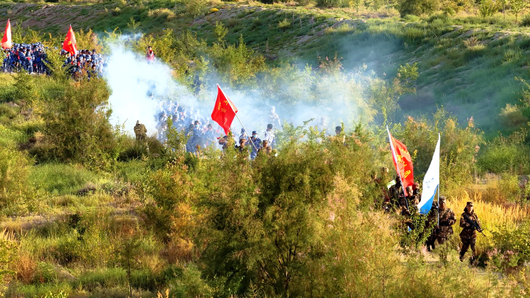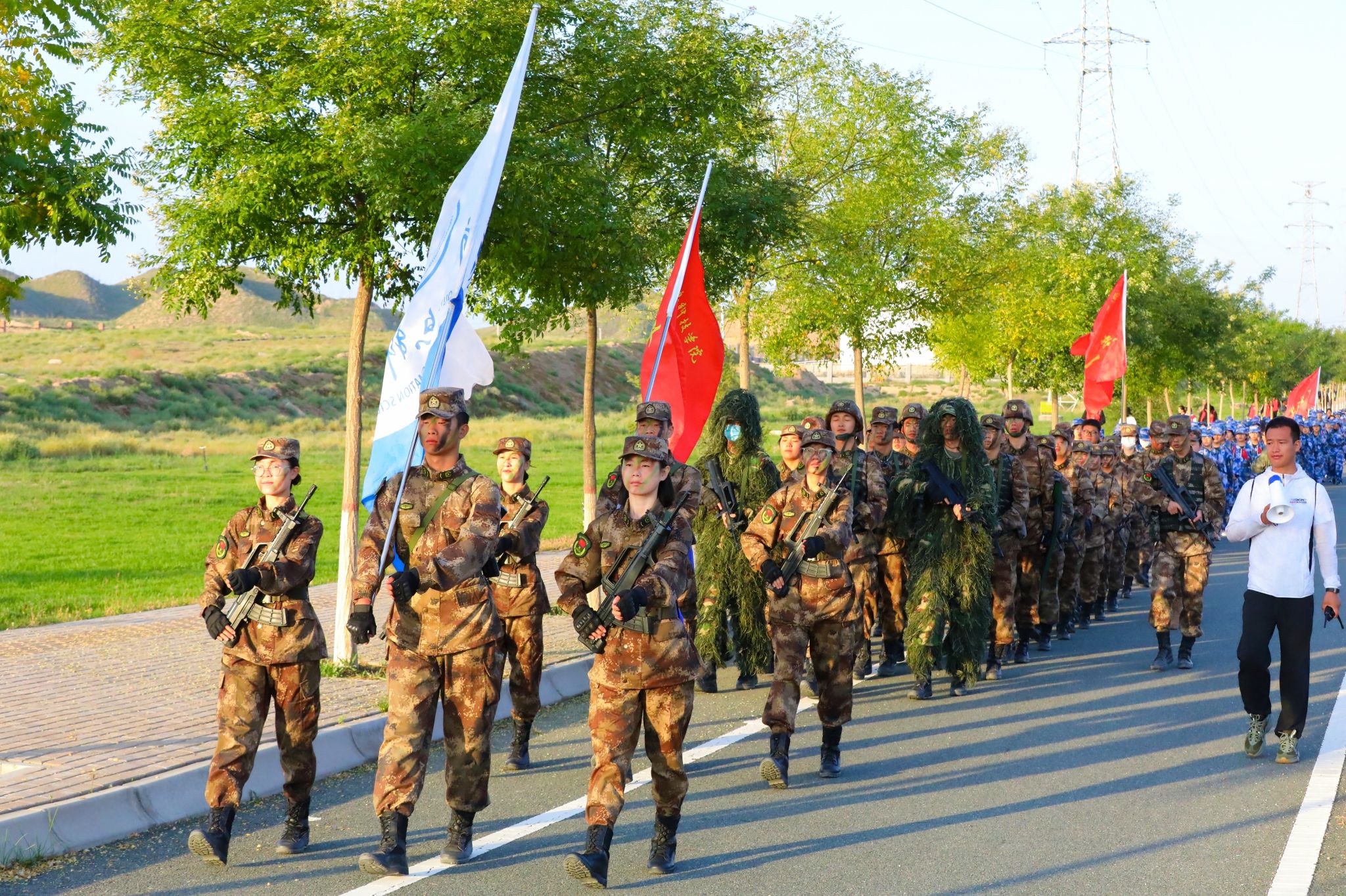 本次拉练路线全程约21.0975公里(半程马拉松),途经公路、山地等。设置“攻占山头”“穿越烟雾”“紧急疏散”“战场救援”等战术环节。硝烟四起、呐喊震天,同学们持枪匍匐、协作前行,沉浸式体验战士的使命与担当,深刻理解团队与纪律的含义。