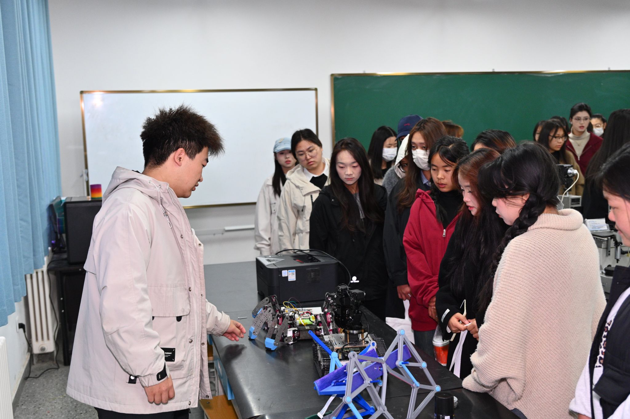 在志愿者的带领下,同学们依次参观了学校实验实训大楼、书院制学生公寓,以及有“哈利波特的魔法街”之称的商业街,体验本科高校的学习生活氛围,深入了解beat365英国官方网站的教学设施、科研成果和校园文化。同学们分组体验了工程训练中心、电气控制与自动化实验中心、机械实验教学示范中心、电工电子实验教学示范中心等省级实验教学示范中心;物联网工程实验室等省级重点实验室;人工智能、智能制造、优必选机器人、智能测绘等校企共建现代产业学院。
