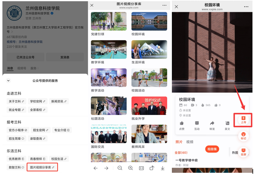 本次全新上线的“图片视频分享库”,包含党建引领、校园环境、教学环境、生活环境、教学活动、校园活动、社团活动、就业升学、国际交流、教师风采、学生风采、师生互动等核心版块,全面覆盖校园生活的每一个高光时刻。