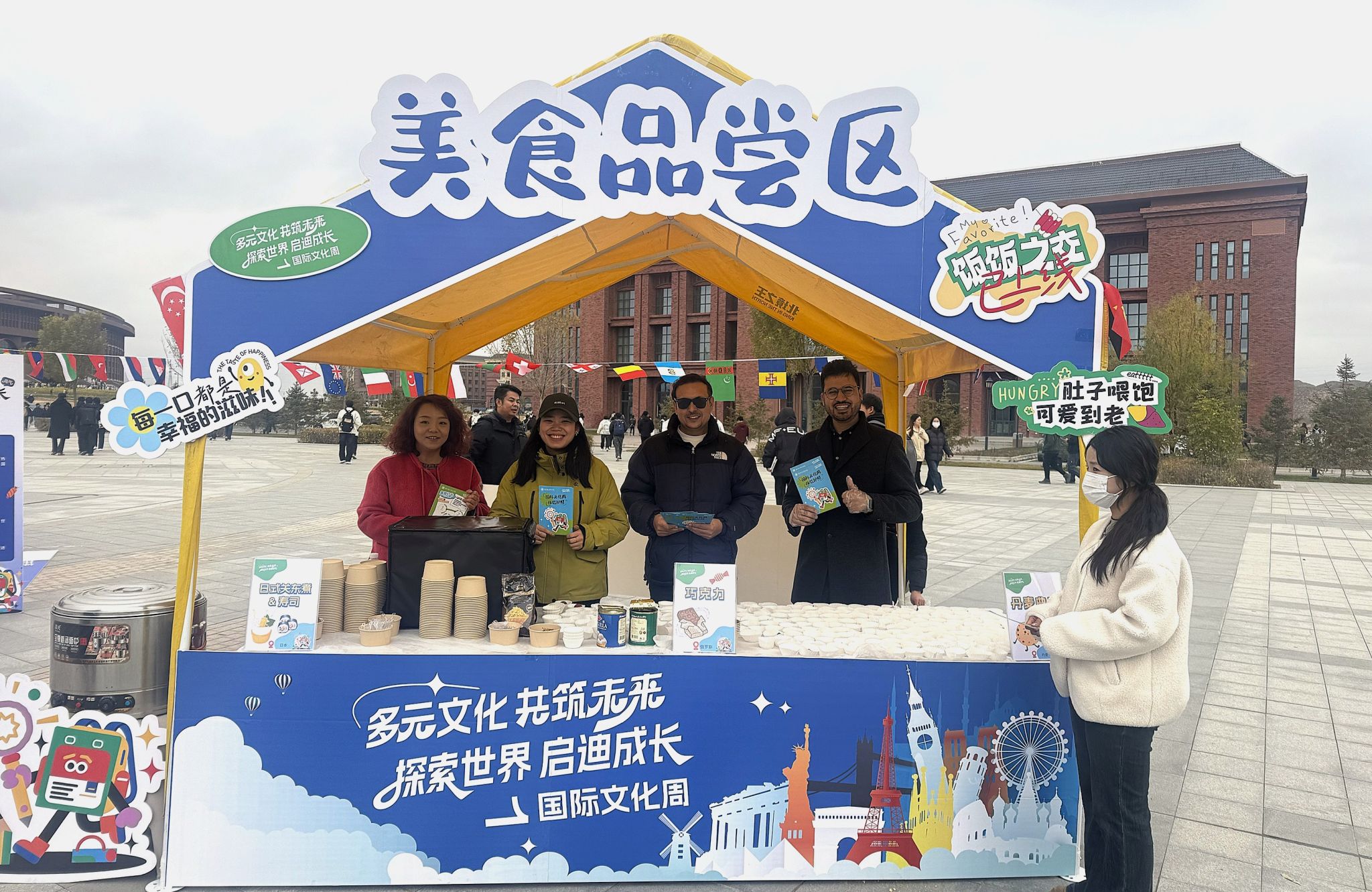 11月5日,规矩广场迎来一场“世界文化集市”的盛宴。美食品鉴、手工创作、盖章集卡与留学咨询四大板块联动登场,整个广场便化作跨文化交融的生动课堂。国际友人成为行走的“文化名片”,他们带来的鲜活故事与同学们的求知热忱在此相遇,碰撞出理解与共鸣的亮光。这是一次味蕾的旅行,一次巧手的实践,更是一次文化的相遇。同学们在沉浸式的互动中,真切触摸了世界文明的多样图景,感受到美美与共的深刻内涵。