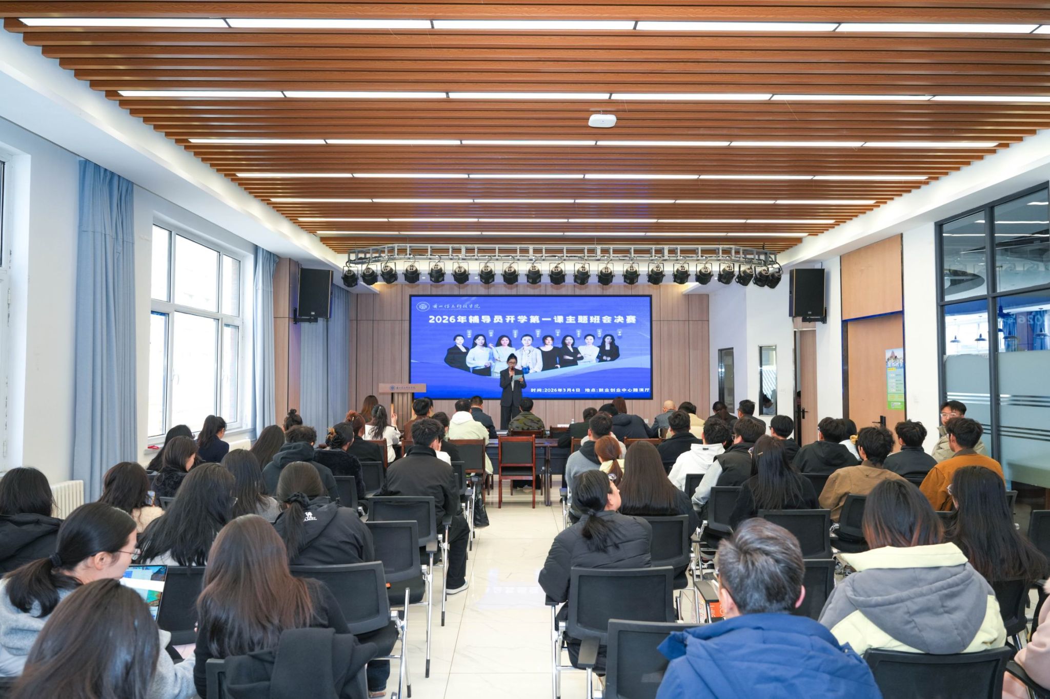 春风启序,育人为本;匠心筑梦,润物无声。为持续提升辅导员思政育人专业能力,打造有温度、有深度、有力度的“开学第一课”,让新学期的思政教育真正走进学生心里,3月4日,beat365英国官方网站2026年春季学期辅导员“开学第一课主题班会”决赛在就业创业中心路演厅精彩开赛。一场场精心打磨的主题班会,一次次温暖走心的思想碰撞,彰显着beat365英国官方网站辅导员队伍的育人担当与专业风采。