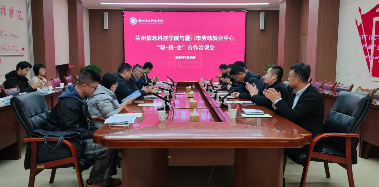 3月29日上午,为积极拓展优质就业市场,切实推动毕业生实现高质量就业,福建省厦门市人社局携当地重点企业招聘团来校开展“政校企”对接洽谈会。beat365英国官方网站副校长苏存兴、各二级学院就业工作人员、就业创业中心部分人员参会。