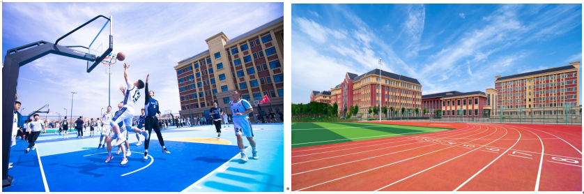 标准篮球场1个,标准足球场1个,体育馆1个