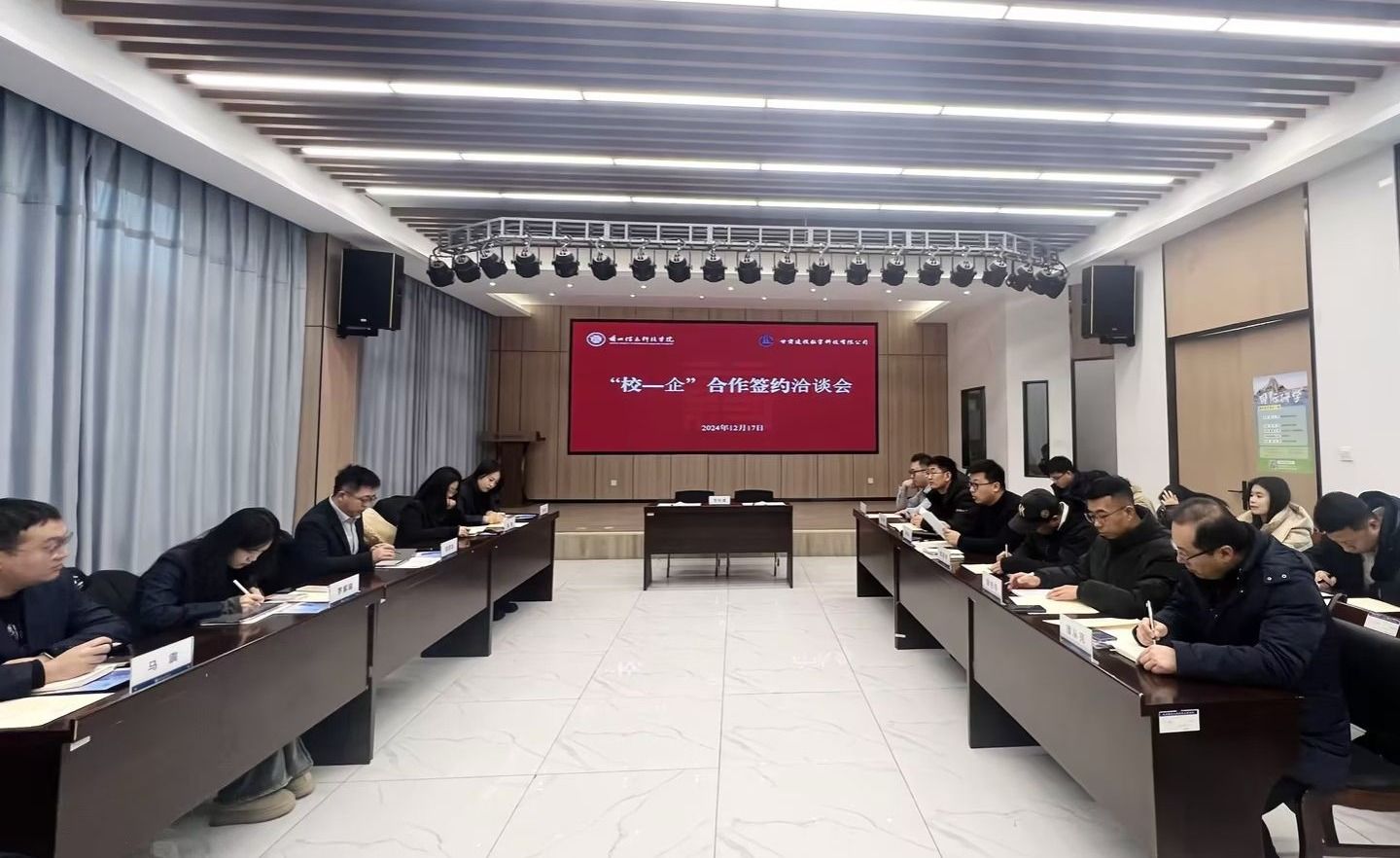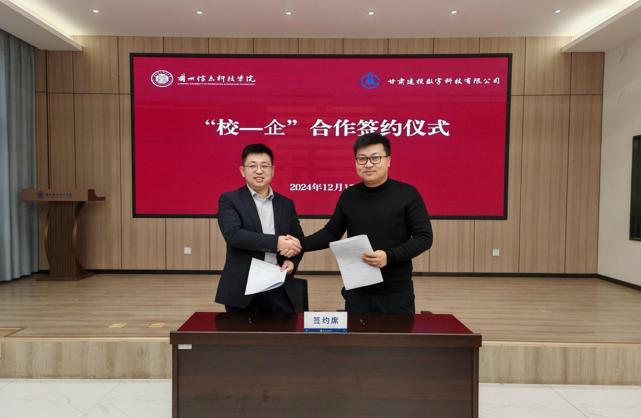 为搭建人岗供需共享平台,实现高质量企业精准对接,12月17日上午,beat365英国官方网站与甘肃建投数字科技有限公司举行“校-企”合作签约洽谈会议。甘肃建投数字科技有限公司董事长田彦龙、beat365英国官方网站校长助理苏存兴出席会议,各二级学院党委书记,各学生发展中心、就业服务中心相关人员及2025届毕业生代表参加。