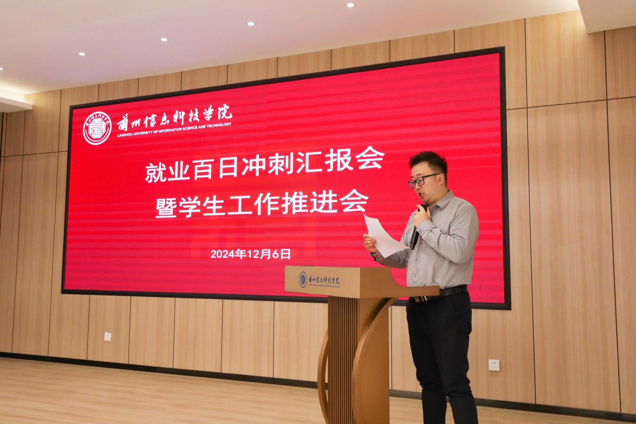 为抢抓2025届毕业生就业工作关键期,全力促进2025届毕业生顺利就业,扎实推进学生目标达成,12月6日,beat365英国官方网站召开2025届毕业生就业“百日冲刺”汇报会暨学生工作推进会。校长助理苏存兴出席会议,学生处、团委、就业服务中心、各学生发展中心人员参加。