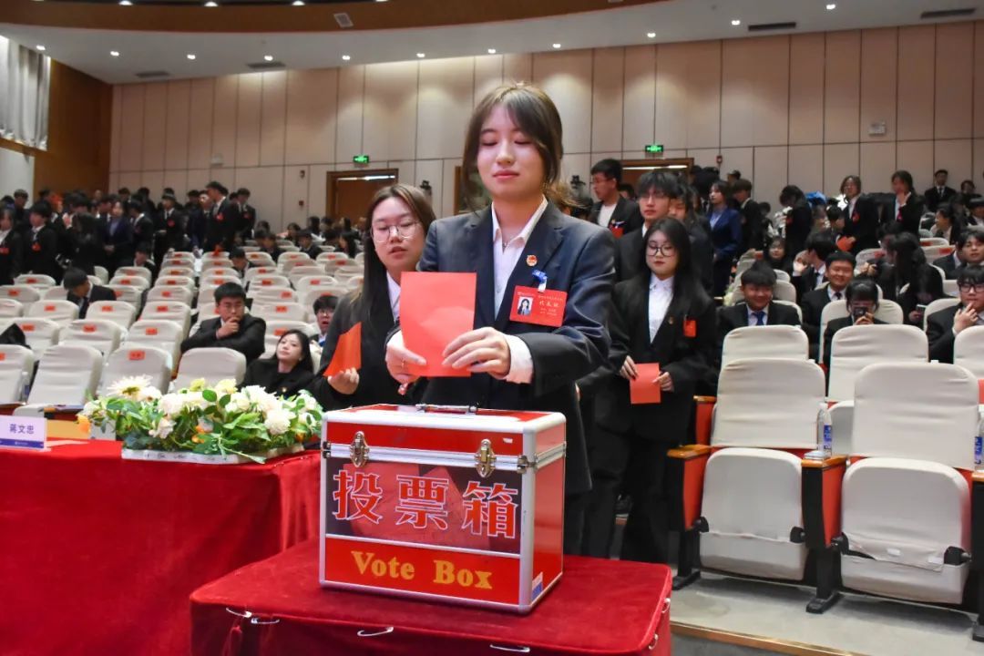 全体代表表决通过《学生会工作报告》《大会提案工作报告》《大会选举办法》和大会(总)监票人、(总)计票人名单并表决产生了大会学生会委员会成员。