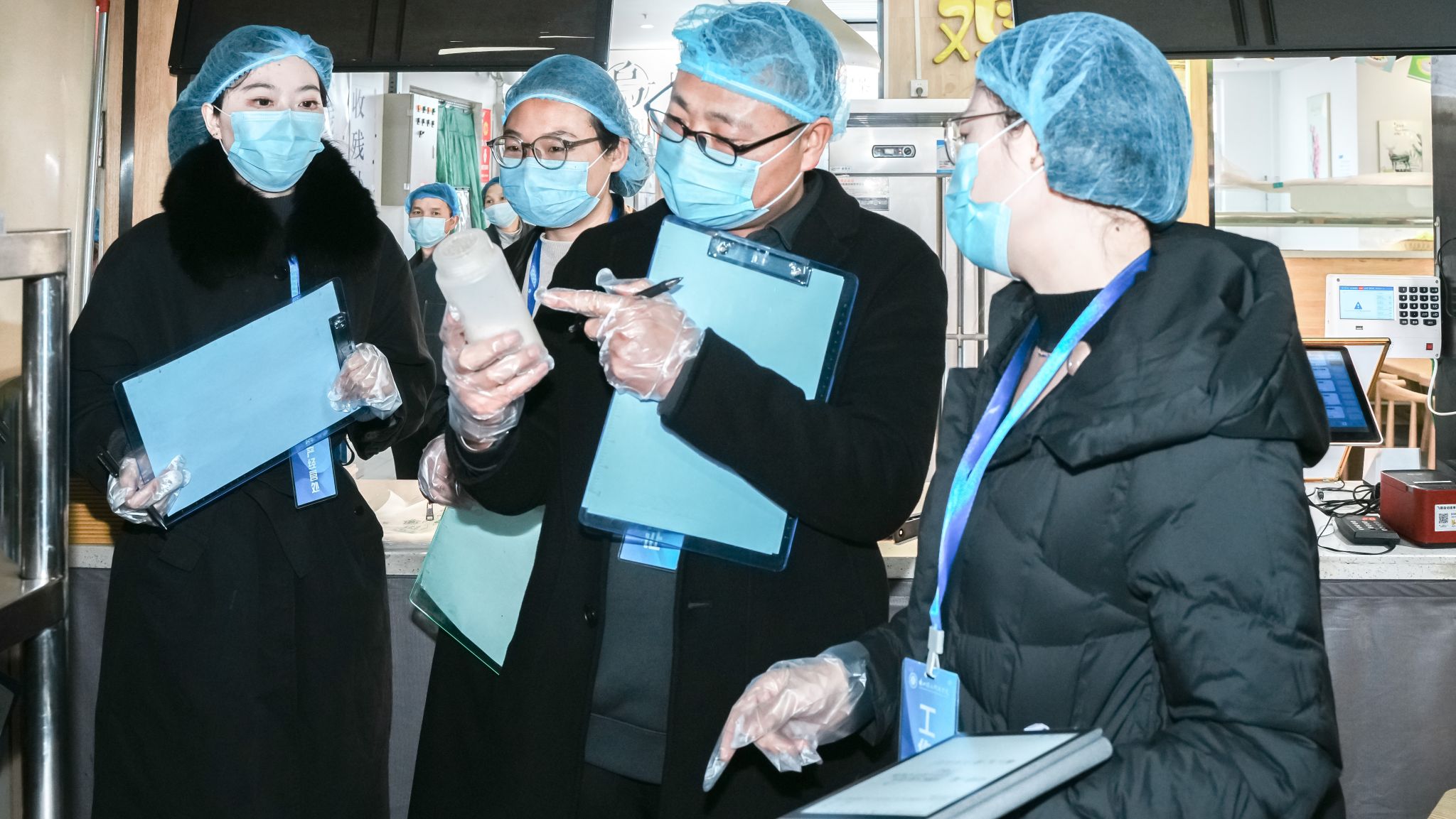 检查小组现查严查校园食堂的环境卫生、操作流程、从业人员健康证件、餐具清洗消毒、食品留样、防蝇灭蝇、食品标签等细节,对于现场检查出的问题,要求立即整改,不得再次发生。