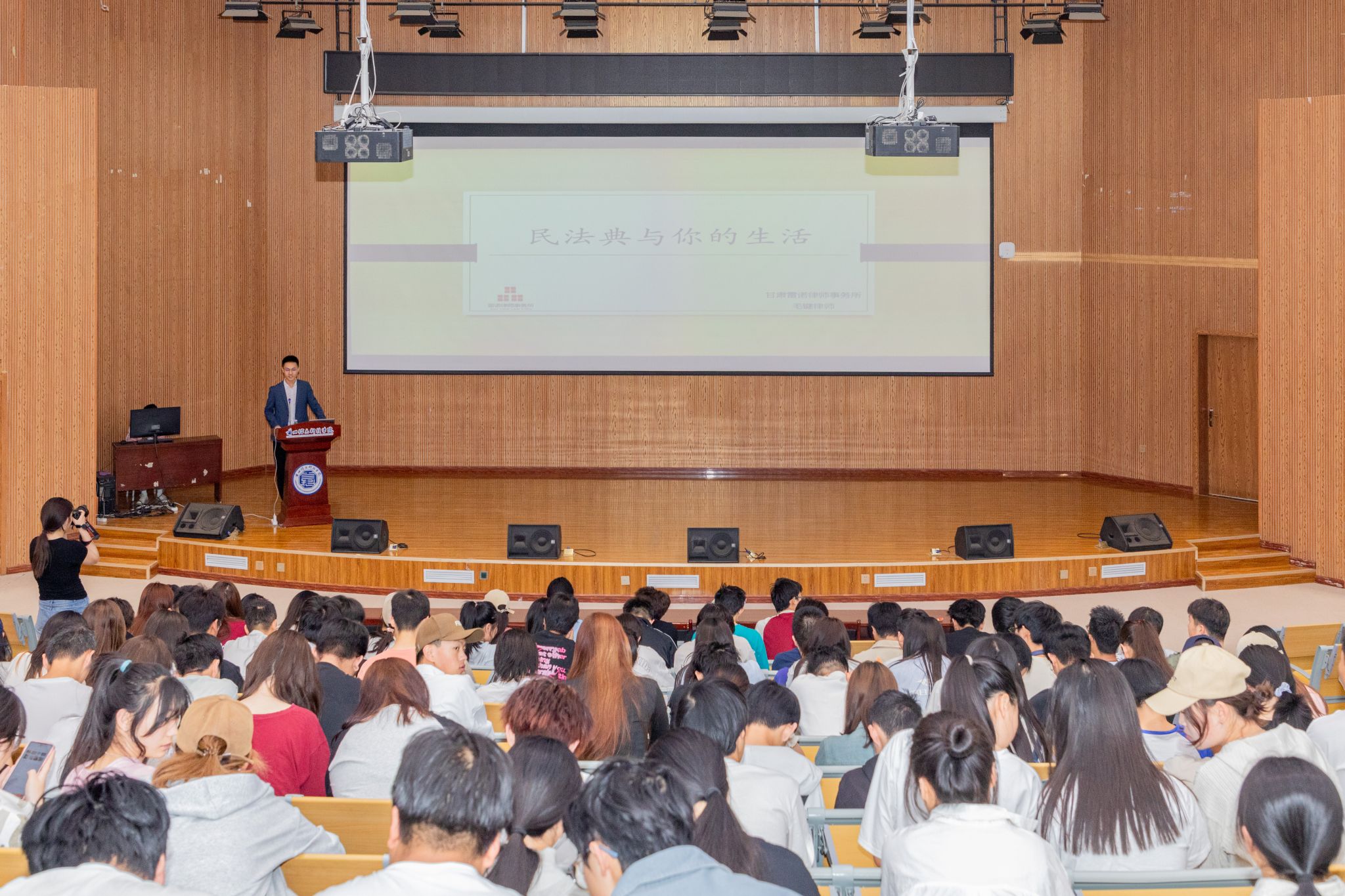 毛键律师从《中华人民共和国民法典》的立法历程、颁布意义、重点内容等方面作了由浅入深的解读,重点阐述了《中华人民共和国民法典》“践行和弘扬社会主义核心价值观,维护社会公平正义”等核心要义。随后,毛键律师引入“购房合同霸王条款案”、“禁止高利放贷”、“AI换脸伪造他人案”、“胁迫结婚案”、“网络诽谤案”、“遗弃动物案”、“高空抛物案”等当前社会热点案例,结合自身丰富的经验,将枯燥、抽象的法条以通俗易懂的形式一一展现,引导大家学习法治观念、领悟法治思维的同时,提升师生学法、守法、用法的意识。