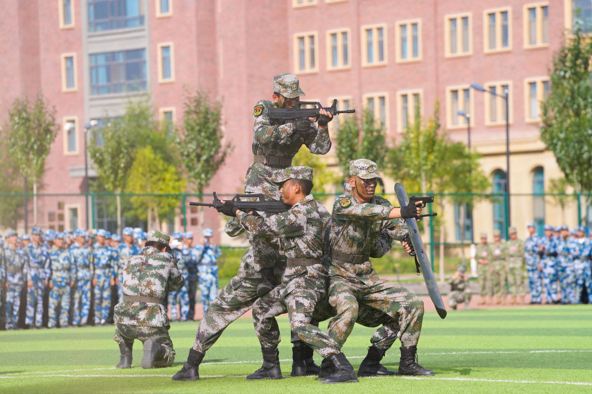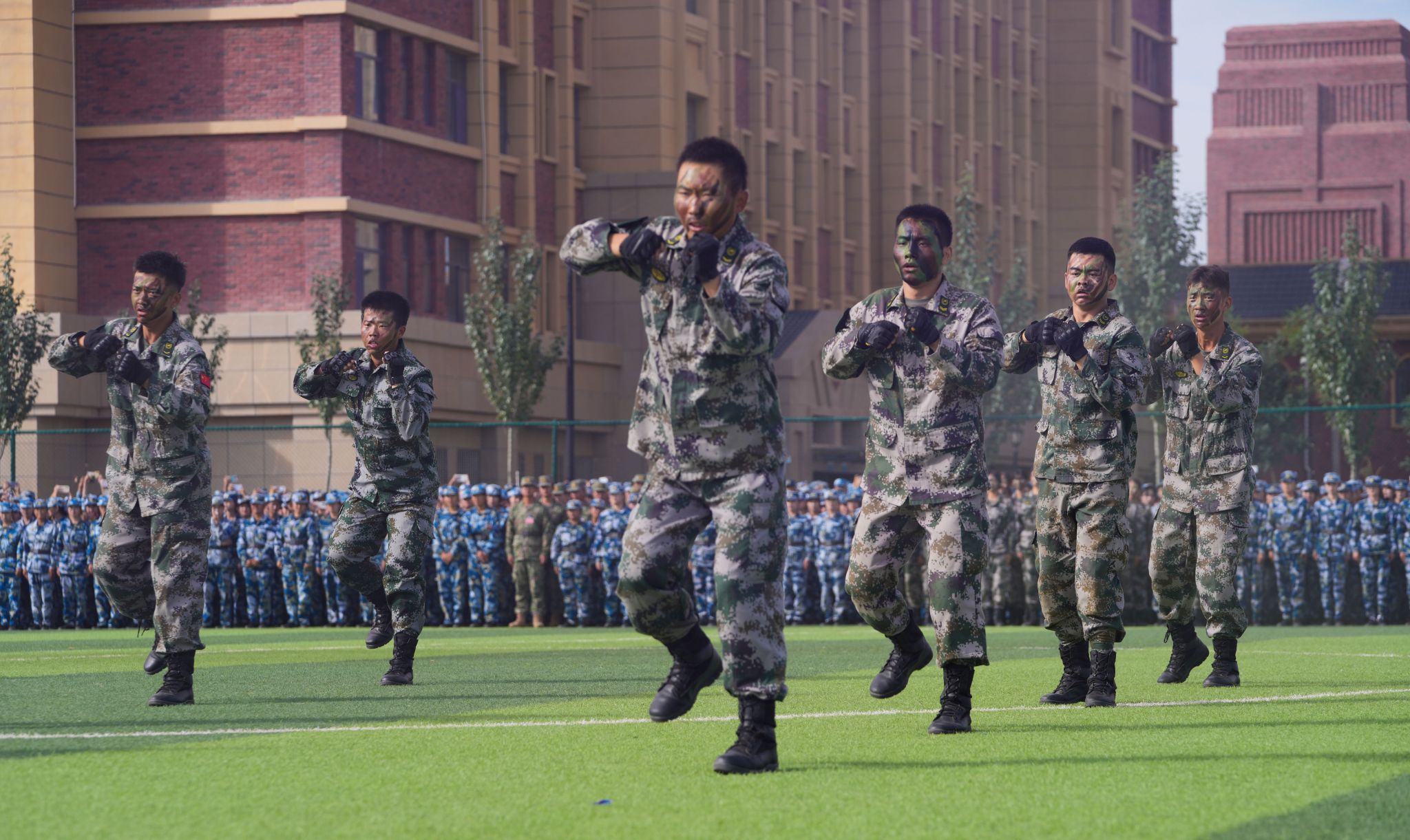 9月10日,伴随着“请党放心,强国有我”的嘹亮口号,beat365英国官方网站2023年学生国防教育暨军事技能训练总结表彰大会在田径场隆重举行。兰州警备区政治工作处贺亚军中校及全体校领导出席大会,大会由校长助理朱明敏主持。学校各教学单位负责人、全体军训教官、全体辅导员以及6200余名参训学生参加大会。