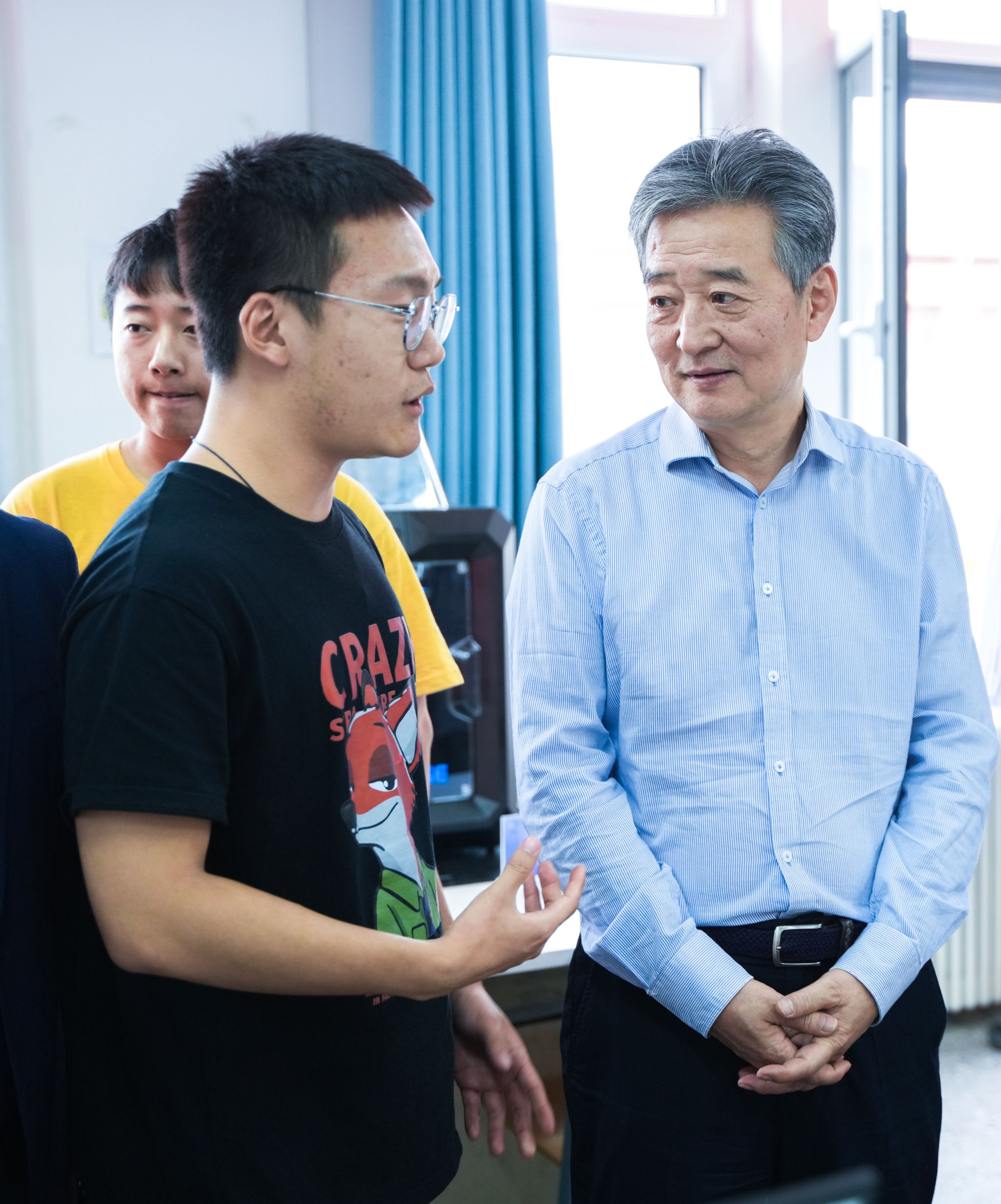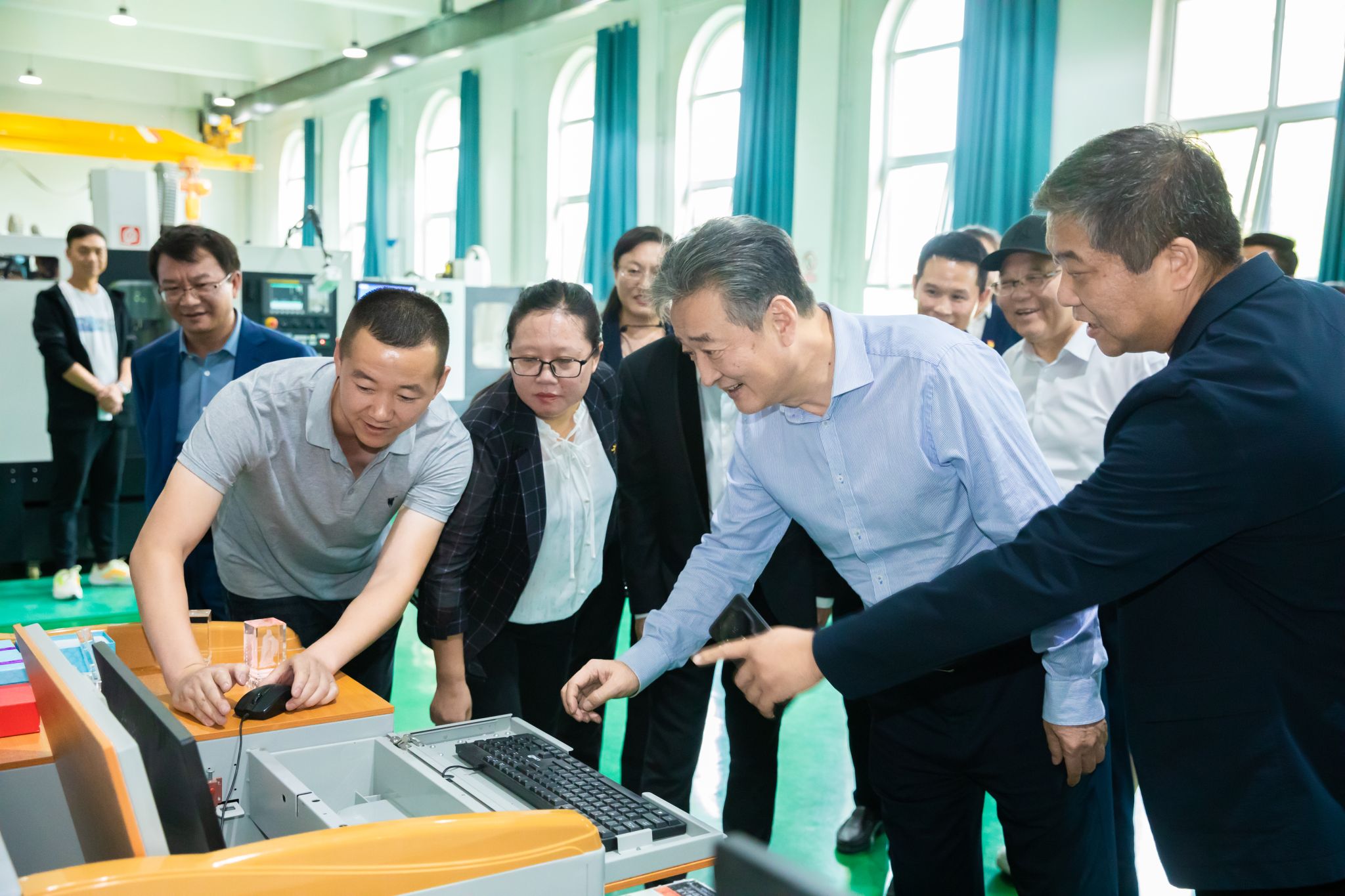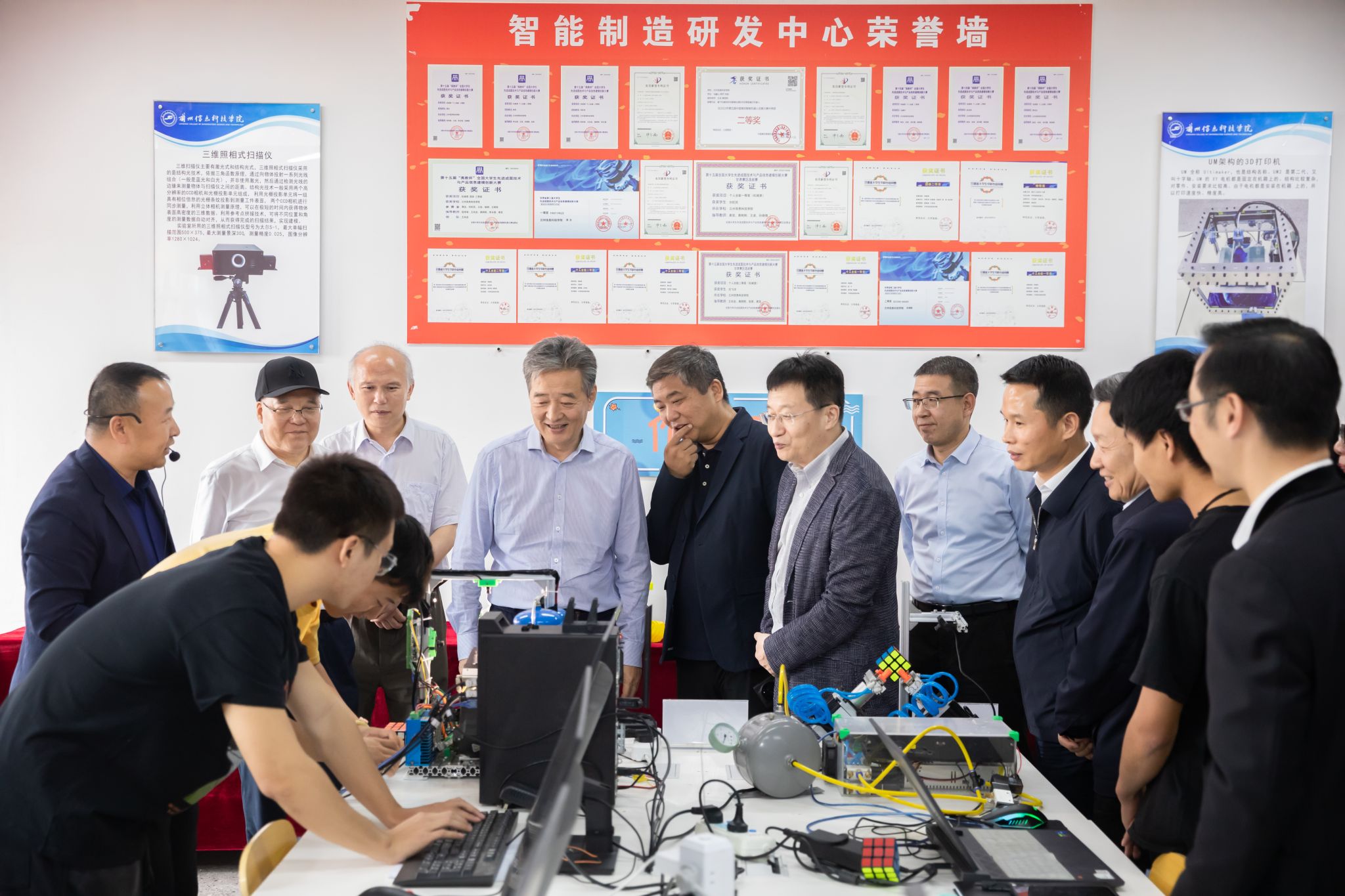 王刚副主席一行实地考察beat365英国官方网站实验实训中心,参观工业自动化实验室、数字化设计制造中心、华为ICT数通实训室、食品科学与工程实训室、中软国际人工智能产业学院、智能制造产业学院等教学区域,详细了解校园基础设施建设以及教育教学、招生就业、教师发展、文化建设等情况,并在现场与授课教师、学生亲切交流。