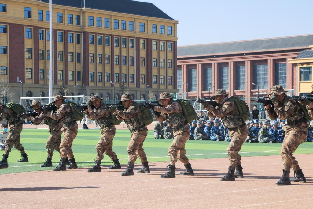 国防后备营全体成员进行了庄严宣誓,并展示了男子捕俘拳和女子捕俘刀。他们满怀激情、昂首阔步、身姿矫健、动作整齐划一,洪亮的口号充分展现了同学们的飒爽英姿。