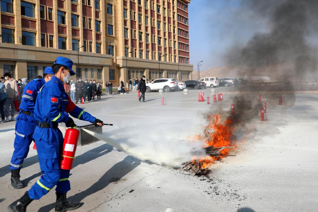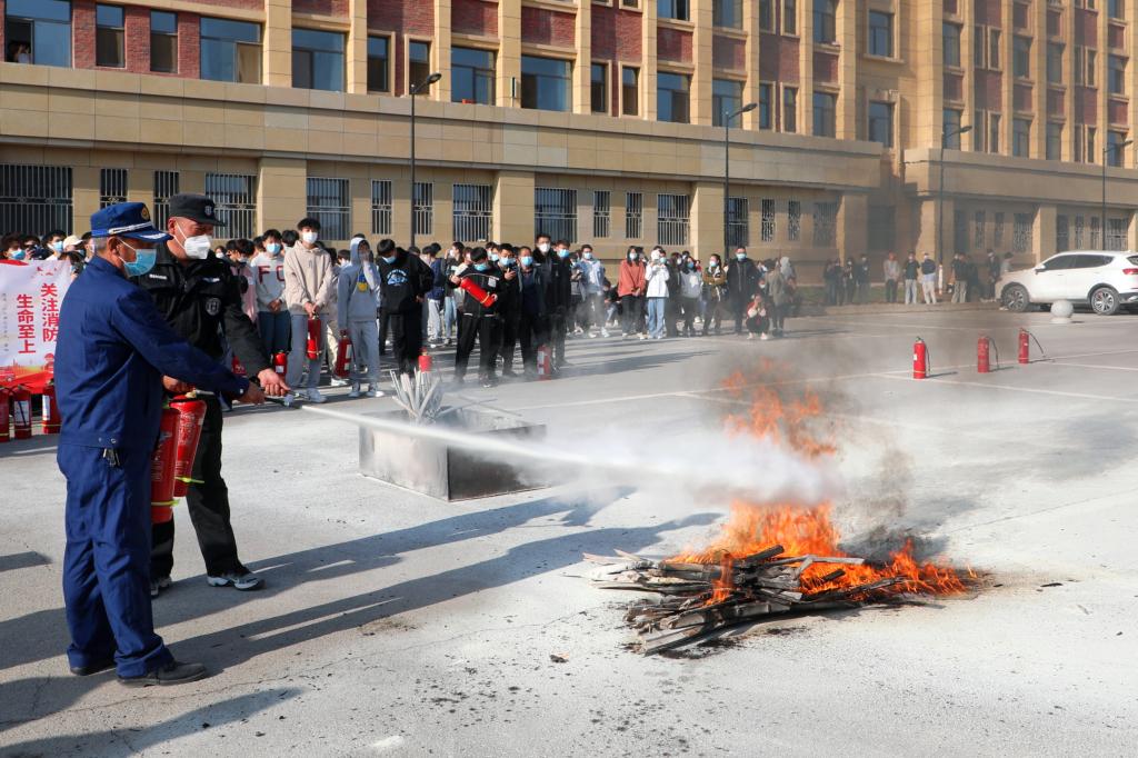 冬日严严,天干物燥,疫情防控形势复杂多变,校园安全稳定面临巨大挑战!为全面落实消防责任,防范安全风险,确保广大师生生命安全,11月9日下午,beat365英国官方网站组织开展消防灭火演练暨消防安全月启动仪式。学校二级消防重点防范单位代表、餐厅厨师、新入职教职工、蓝天救援队、学生代表、保安员、宿管员等300余名师生参加了此次活动。