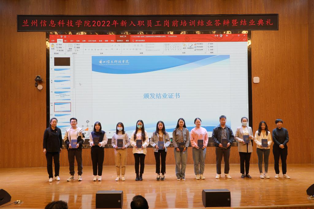 结业典礼在庄严肃穆的国歌声中拉开帷幕,全体参会人员一同观看了记录新进教职工岗前培训过程的精彩视频。随后,校领导为答辩前三名的小组成员颁发荣誉证书,为培训合格的新进教职工颁发结业证书。