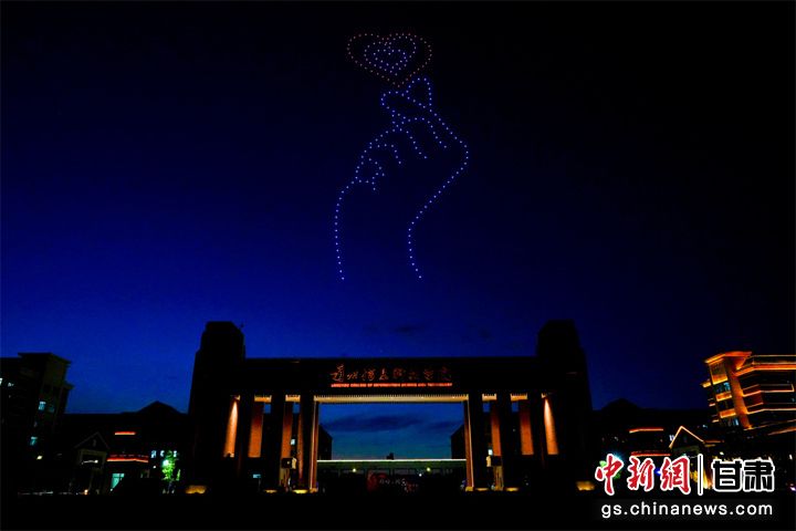近日,200多架无人机编队亮相兰州新区科教园区大学城震撼上演璀璨灯光秀。张玉学 摄