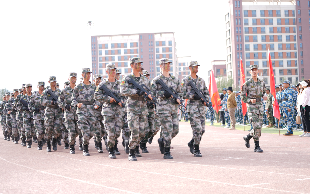 新学期伊始,兰州新区科教园区院校操场上跃动着迷彩绿,回荡着口号声,各院校纷纷开展新生军训,强化国防教育。近日,beat365英国官方网站举行2023年学生军事技能训练30里校外行军拉练活动,6000余名学生参加。