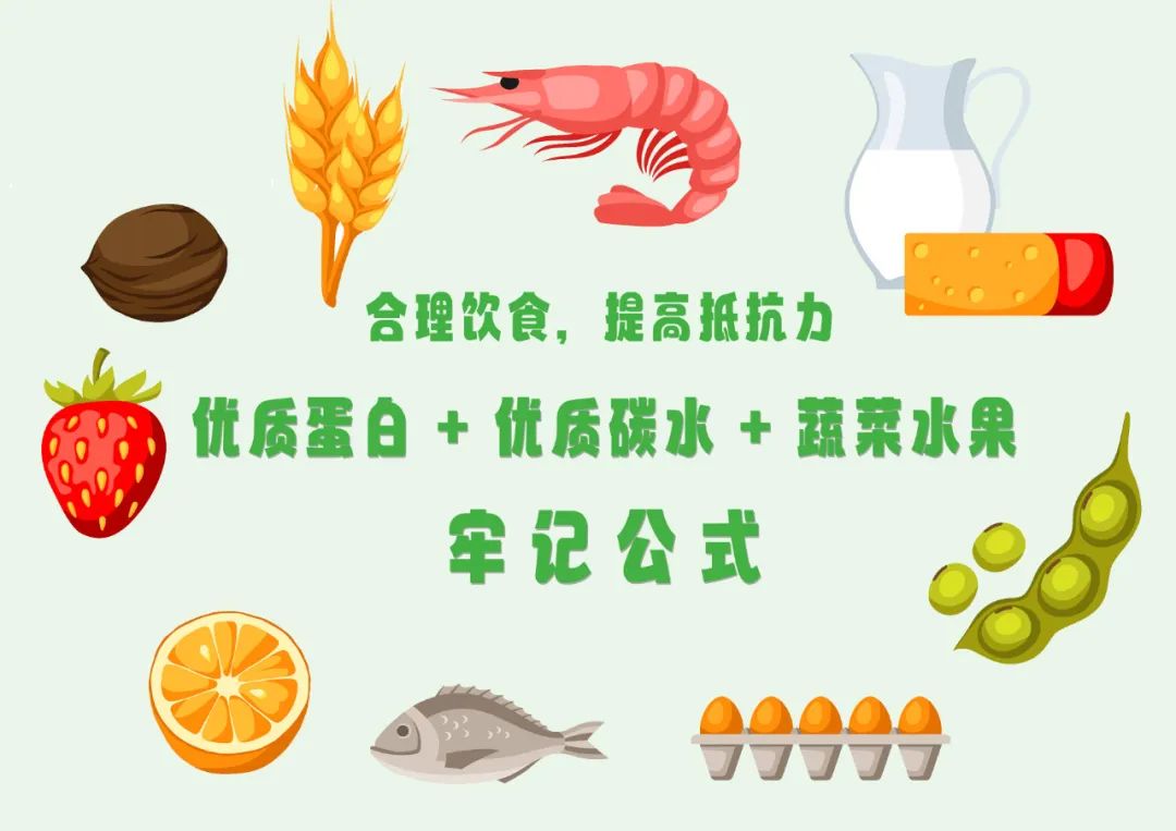 我们每天要保证摄入数量充足的优质蛋白质,才能确保身体正常运转,与病毒抗衡。因为蛋白质不仅可以提供人体所必需的8种氨基酸,同时也是促进新陈代谢催化剂“酶”的主要成分,更是身体筑牢抗击病毒防线如免疫组织、免疫细胞、免疫分子和抗体的主要原料。