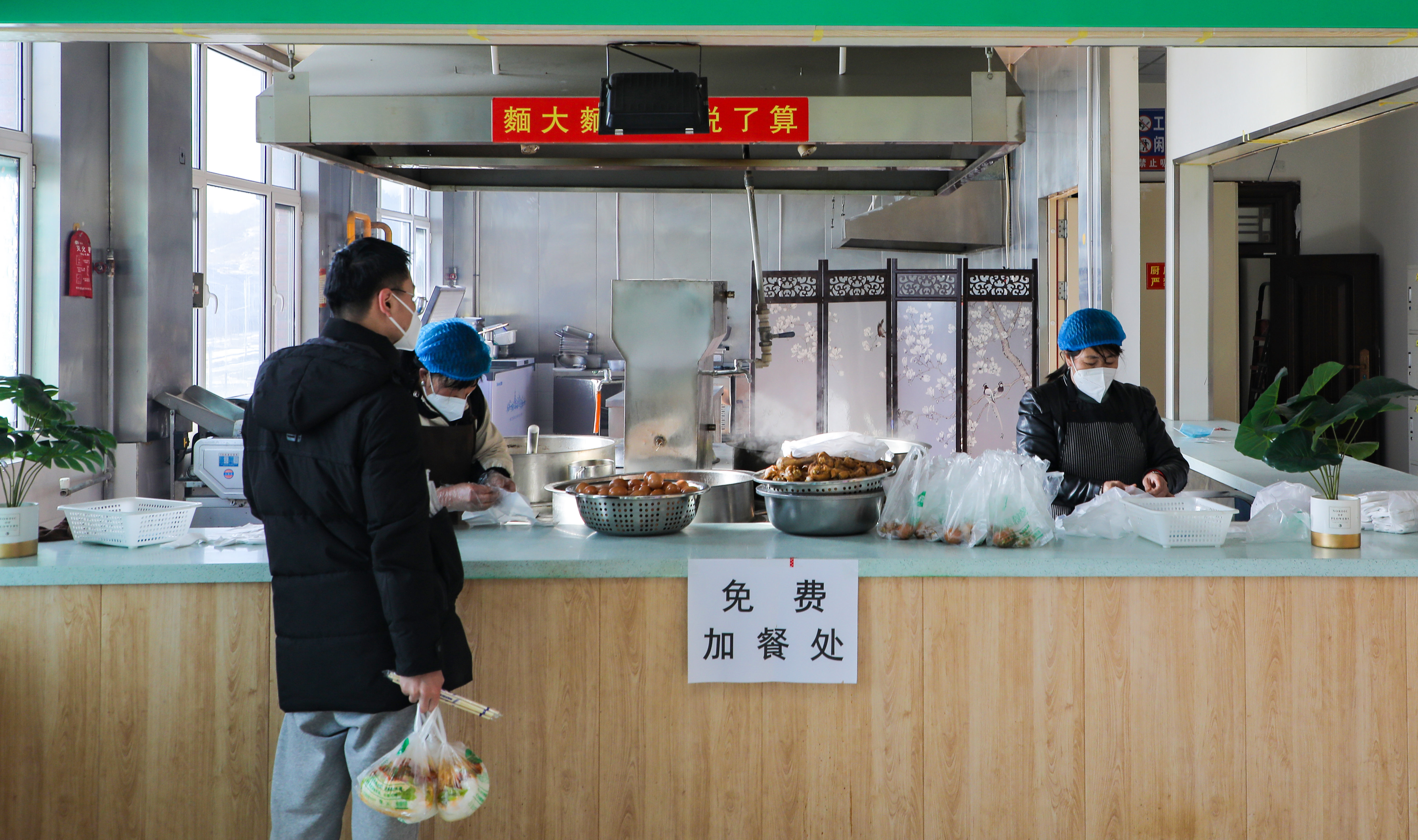 “今天中午的免费加餐是卤鸡腿、鸡蛋,为大家提供充足的蛋白质。我们从17日开始,在中午和晚上就餐时间为考研学子提供免费加餐服务,有卤鸡腿、鸭腿、鸡翅、油焖大虾、口水鸡等。”负责制作加餐的禾悦餐厅厨师告诉记者,餐厅准备的加餐种类比较多,确保每餐不重样,希望在这寒冷的冬日用爱心满满、热气满满的加餐让每一位奋战在备考冲刺关头的“兰科人”元气满满、能量满满。
