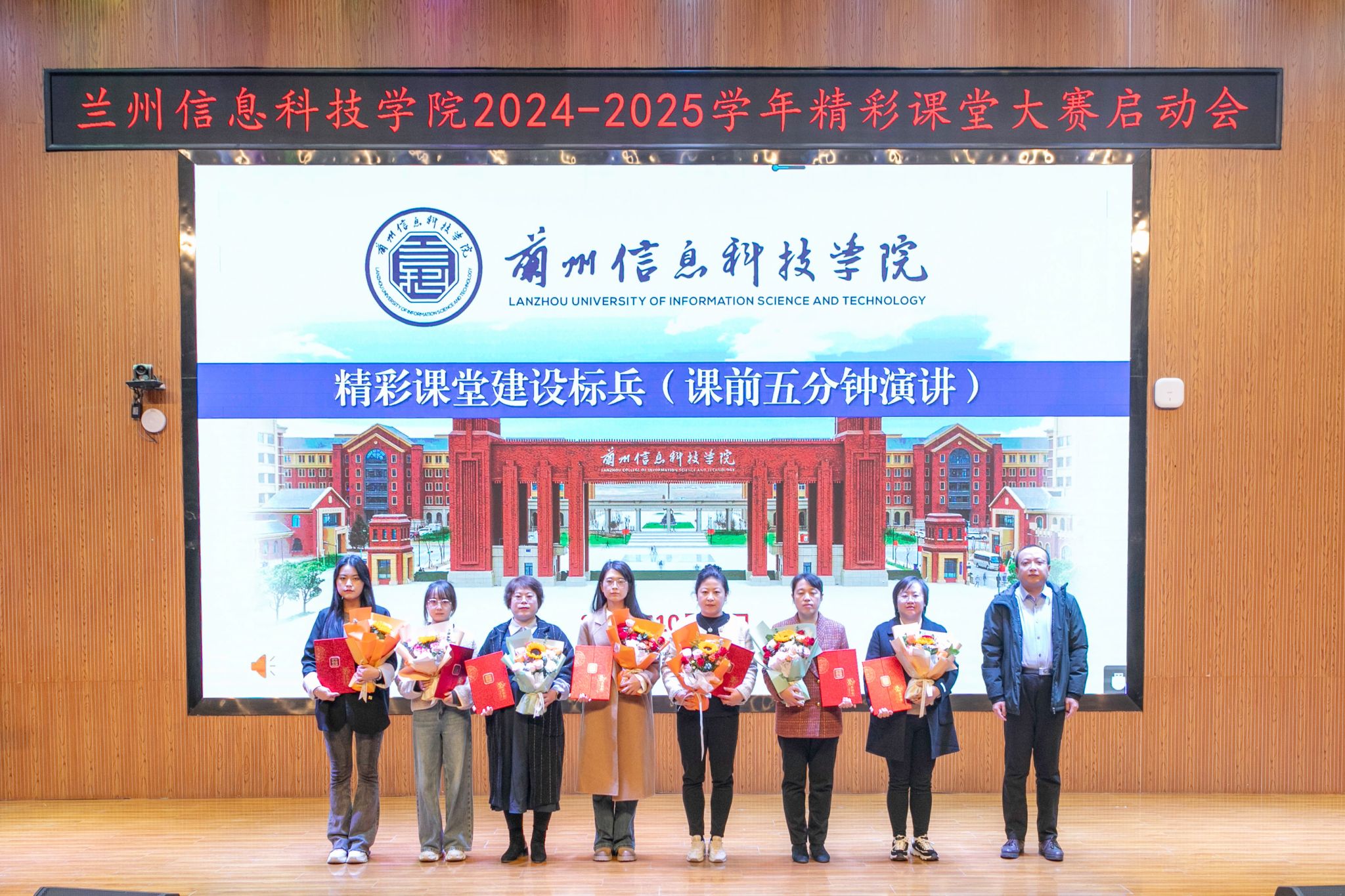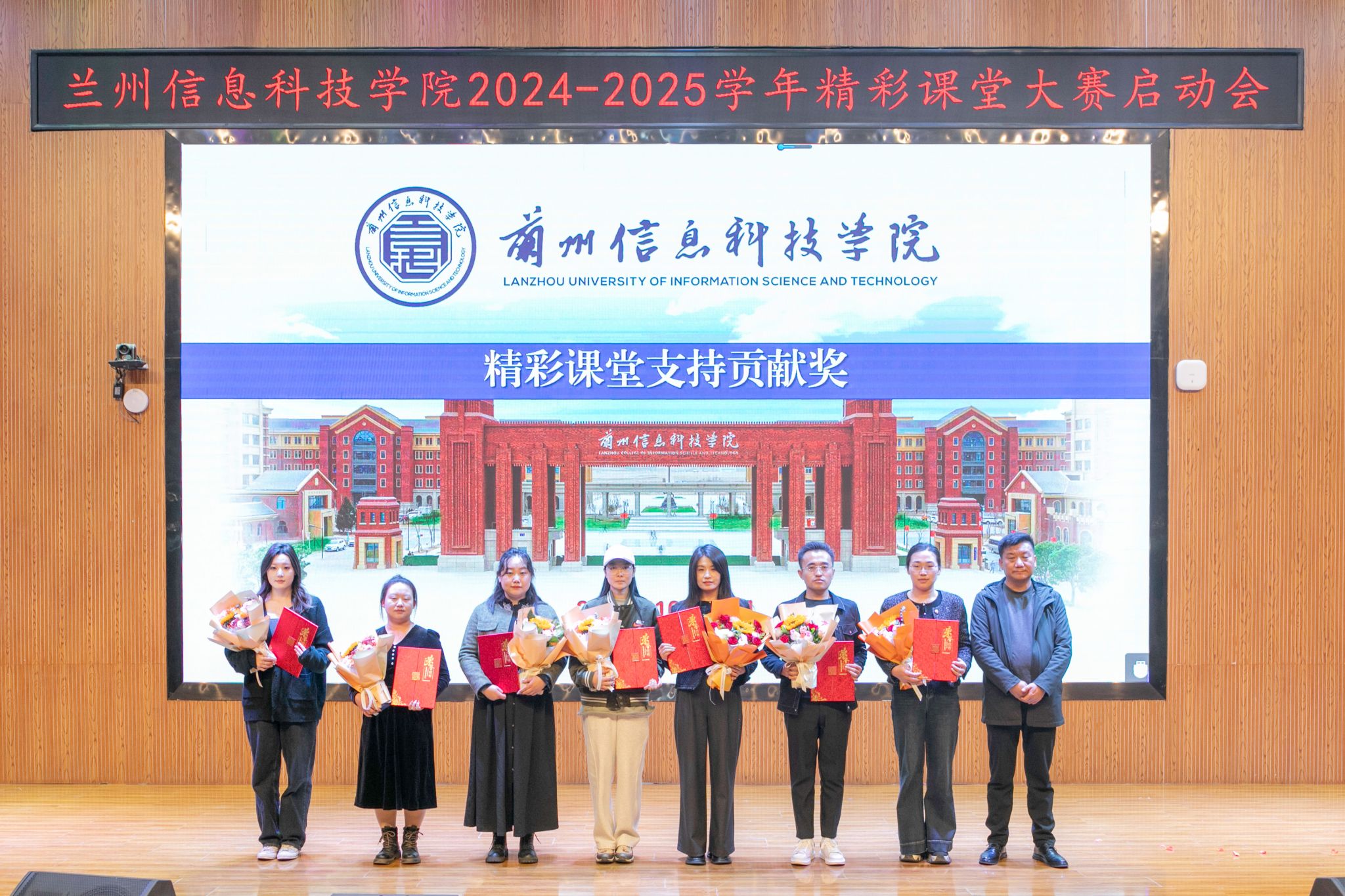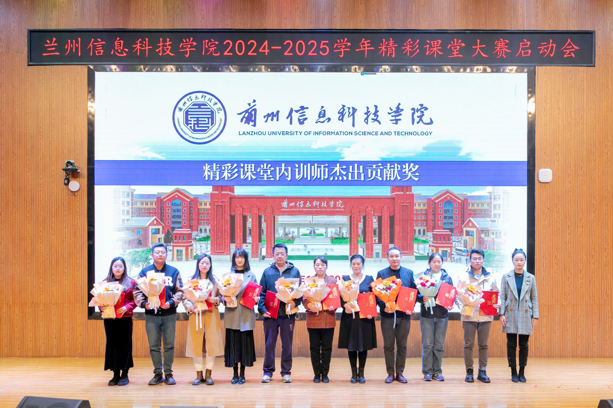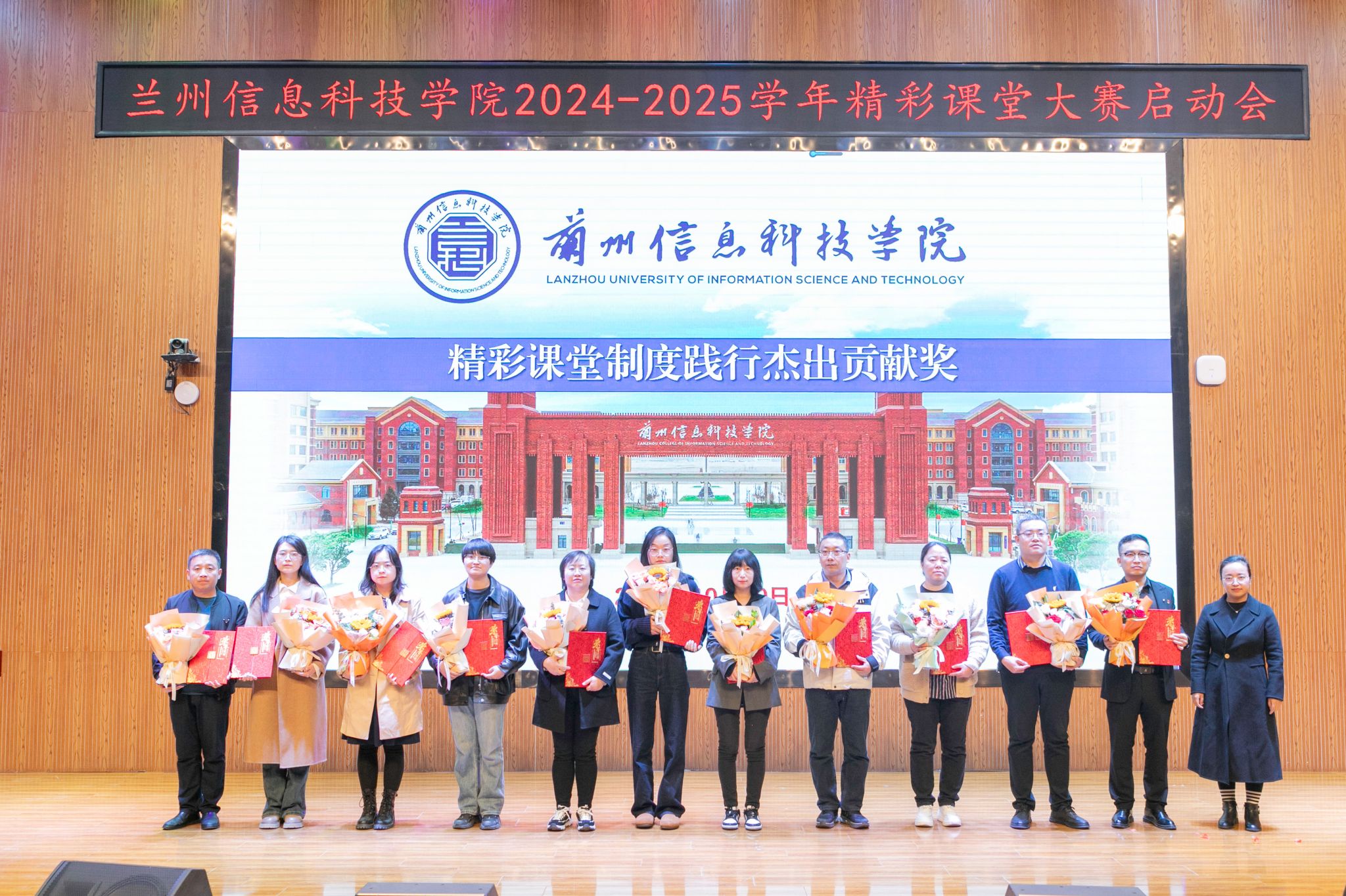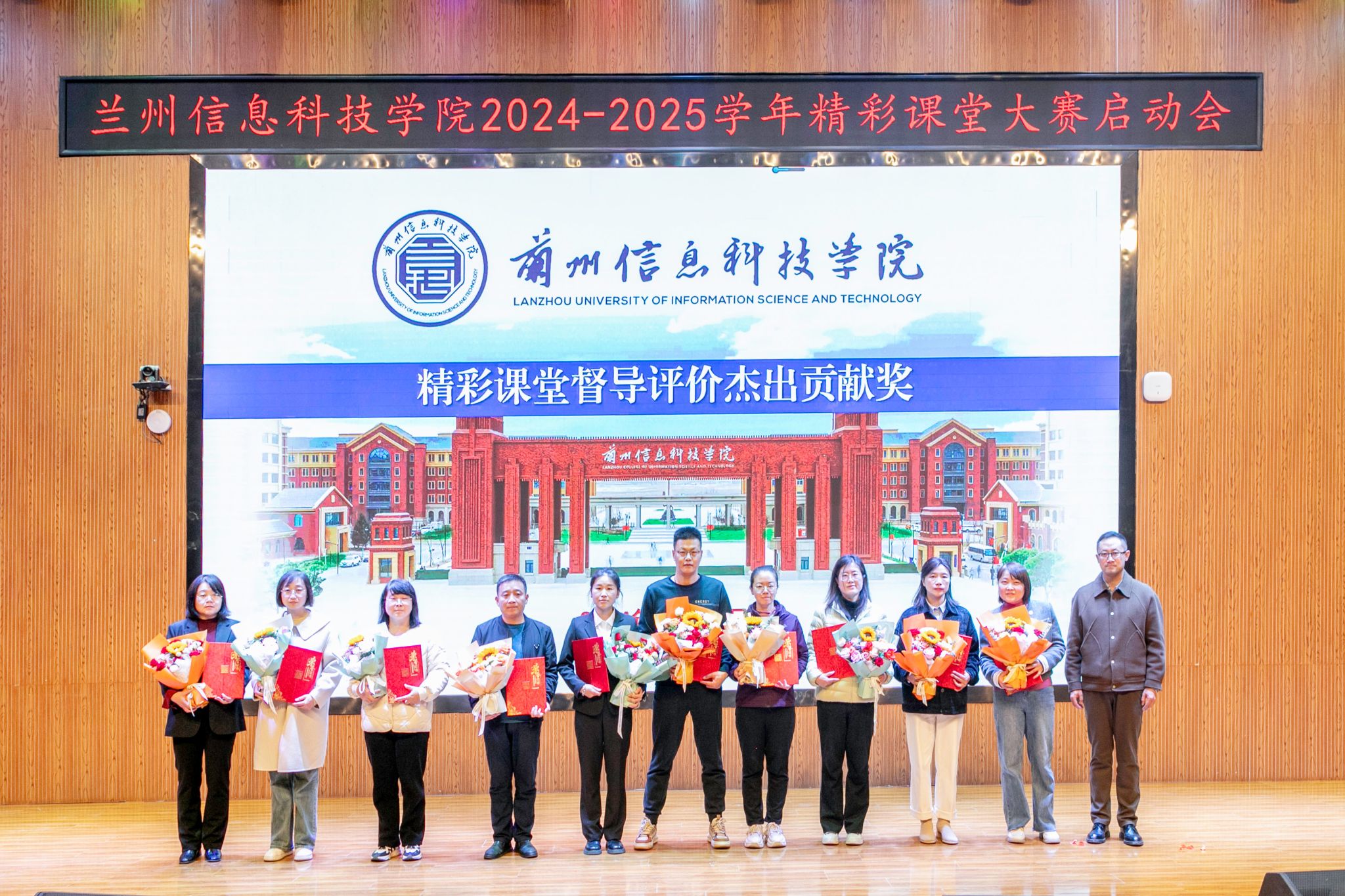 颁奖环节气氛热烈,将本次大会推向高潮。与会领导依次为获得精彩课堂基层教学组织杰出贡献奖的5个团体及获得精彩课堂督导评价杰出贡献奖、精彩课堂制度践行杰出贡献奖、精彩课堂内训师杰出贡献奖、精彩课堂支持贡献奖、精彩课堂建设标兵(微课制作、课前五分钟演讲)的69名教师颁发了荣誉与鲜花。