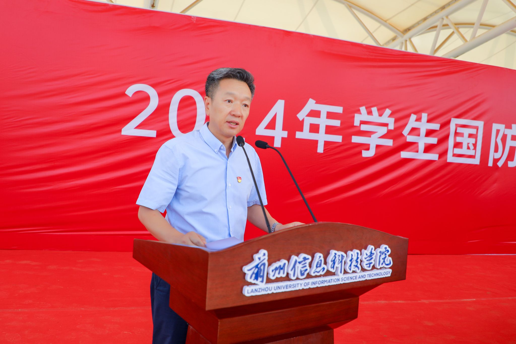 党委书记周怀春在动员讲话中指出,军训是大学生涯中的一门必修课程,也是学校教育教学工作的重要组成部分,更是大学生学习军队优良传统、培养艰苦奋斗精神和集体主义观念的大课堂。同学们要谨记习近平总书记的殷切嘱托,把个人理想融入强国梦、强军梦。他向全体参训学生提出三点期望:一是不忘来时路,时时有参照;二是不负今朝景,未来才可期;三是不怠明日行,人生有仰望。希望全体参训学生在为期两周的国防教育及军事训练过程中知国防、懂技能、强体魄、树精神,做新时代好青年。