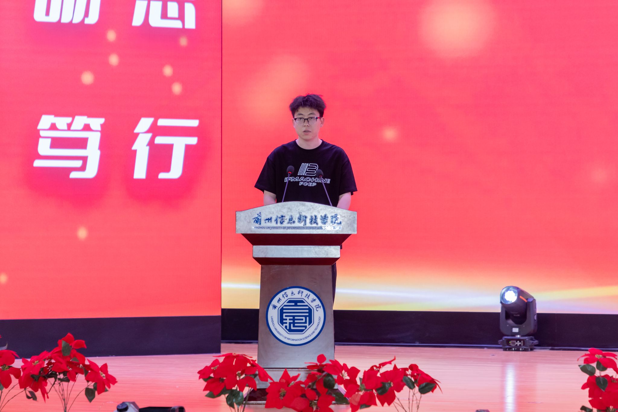 华天科技越人才项目华天奖学金获得学生代表2020级电子信息工程3班魏欢同学在发言中表达了对学校、老师及企业的感激之情,并表示将继续努力学习,不辜负这份荣誉和期望。