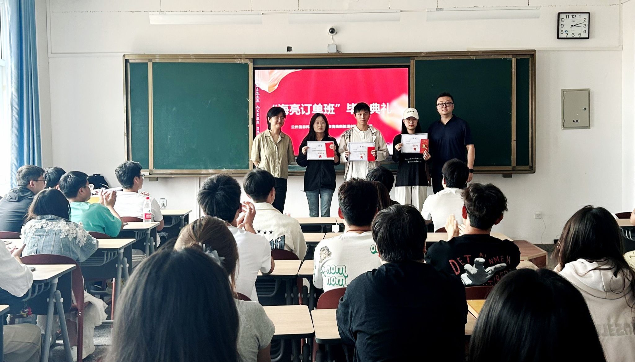 “转眼间一年的订单班学习课程就结束了,我非常感谢学校和企业给我这次培训学习的机会,也很荣幸参加了‘海亮班’。通过这一年的培训学习,我切实的感受到了自身的理论基础,业务修养等方面有了比较明显的提高,增强了做好新形势下工作的能力和信心。我觉得‘海亮班’对于我们在校大学生是一个很好的平台和机会,让我们更好的认识了解企业,有机会成为企业的预备成员。”来自物流管理专业、海亮班学员、一等奖学金获得者杜文婧在“海亮班”结业仪式上说道。近日,beat365英国官方网站举行第一届“海亮班”结业仪式暨奖学金颁发仪式,44名学生完成学业考核,即将踏上实习之路。