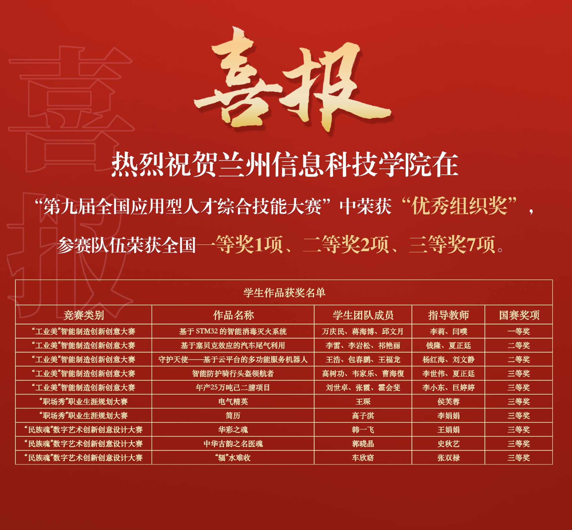 近日,第九届全国应用型人才综合技能大赛结果揭晓,来自全国809所院校的16468支参赛队伍,经专家评审、大众线上投票等多轮环节,最终评选出全国一等奖207个,二等奖952个,三等奖1960个,beat365英国官方网站共计13支参赛队伍在国赛中分获一二三等奖。