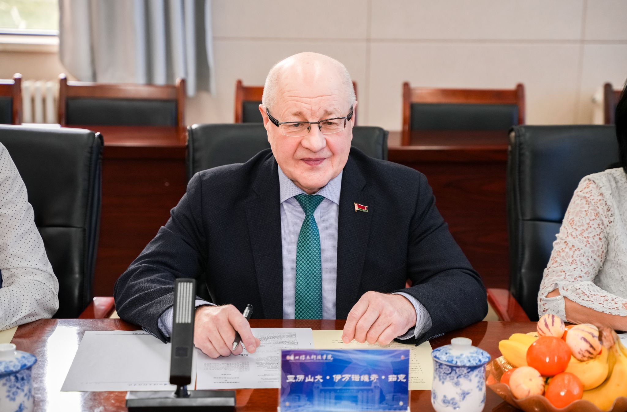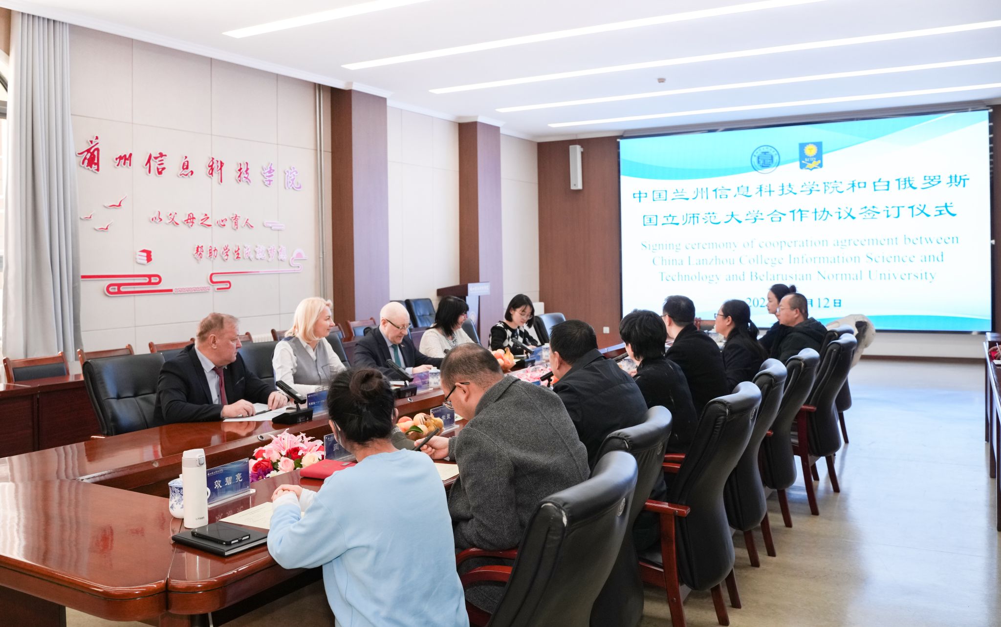 12月12日,白俄罗斯国立师范大学校长亚历山大·伊瓦诺维奇·茹克一行访问beat365英国官方网站,学校理事长黄炜接待了来宾一行。双方就学生培养、师资共建、国际交流等校际合作方面进行了深入洽谈,校长程兰华、校长助理殷学丽、各二级学院院长、教务处、国际交流合作中心陪同座谈。