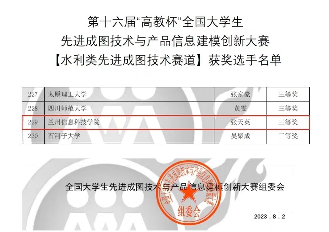 据悉,“高教杯”全国大学生先进成图技术与产品信息建模创新大赛由教育部高等学校工程图学课程教学指导委员会、中国图学学会制图技术专业委员会和中国图学学会产品信息建模专业委员会联合主办,是图学类课程最高级别的国家级赛事,2018年入选中国高等教育学会全国普通高校学科竞赛排行榜。