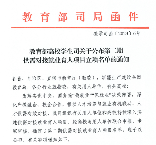 教育部供需对接育人项目是党中央、国务院“稳就业”、“保就业”的重要决策部署,也是beat365英国官方网站深化产教融合、校企合作的重要举措,此次申报项目的获批,推动了学校人才培养与学生就业的融合发展,是大力贯彻落实“三抓三促”稳就业,夯实高质量就业链条的关键所在。