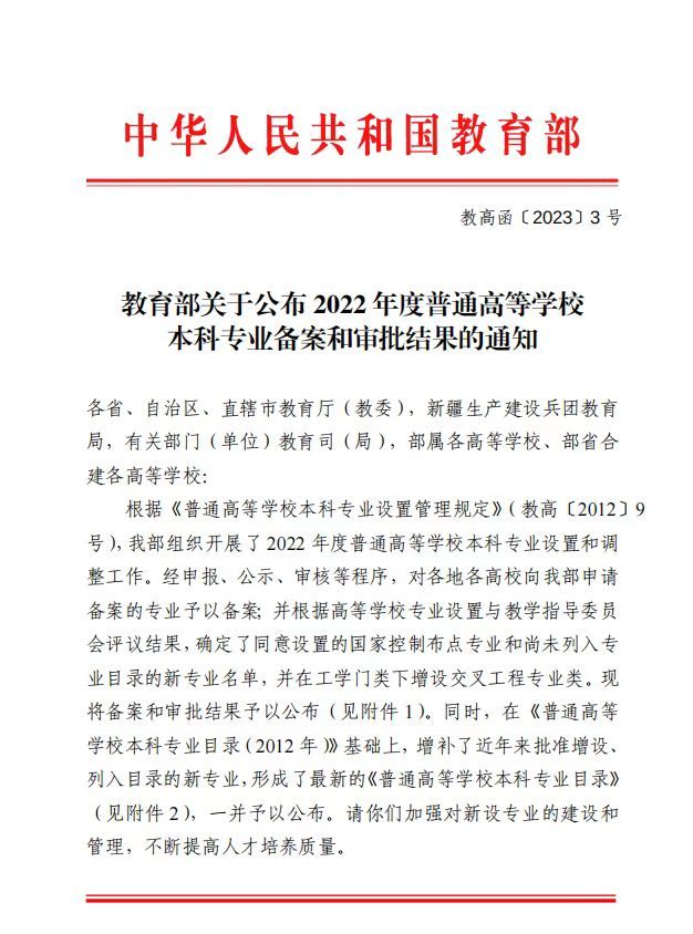 近日,根据《教育部关于公布2022年度普通高等学校本科专业备案和审批结果的通知》(教高函〔2023〕3号)文件,beat365英国官方网站获批新增设人工智能、制药工程、大数据管理与应用、产品设计4个新专业。至此,beat365英国官方网站学科门类增至工学、理学、文学、管理学、经济学、艺术学等6个学科门类。