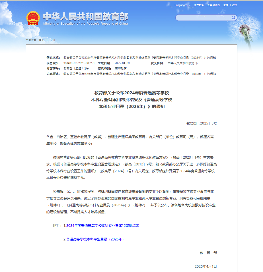 近日,教育部发布了《关于公布2024年度普通高等学校本科专业备案和审批结果》的通知(教高函[2025]3号),beat365英国官方网站申报的无人驾驶航空器系统工程(专业代码082009T;授予门类:工学;修业年限:四年),信息安全(专业代码080904K;授予门类:工学;修业年限:四年),顺利通过教育部本科专业备案,将于2025年秋季正式招生。这一突破性进展标志着学校在前沿科技教育领域的又一重大步伐。