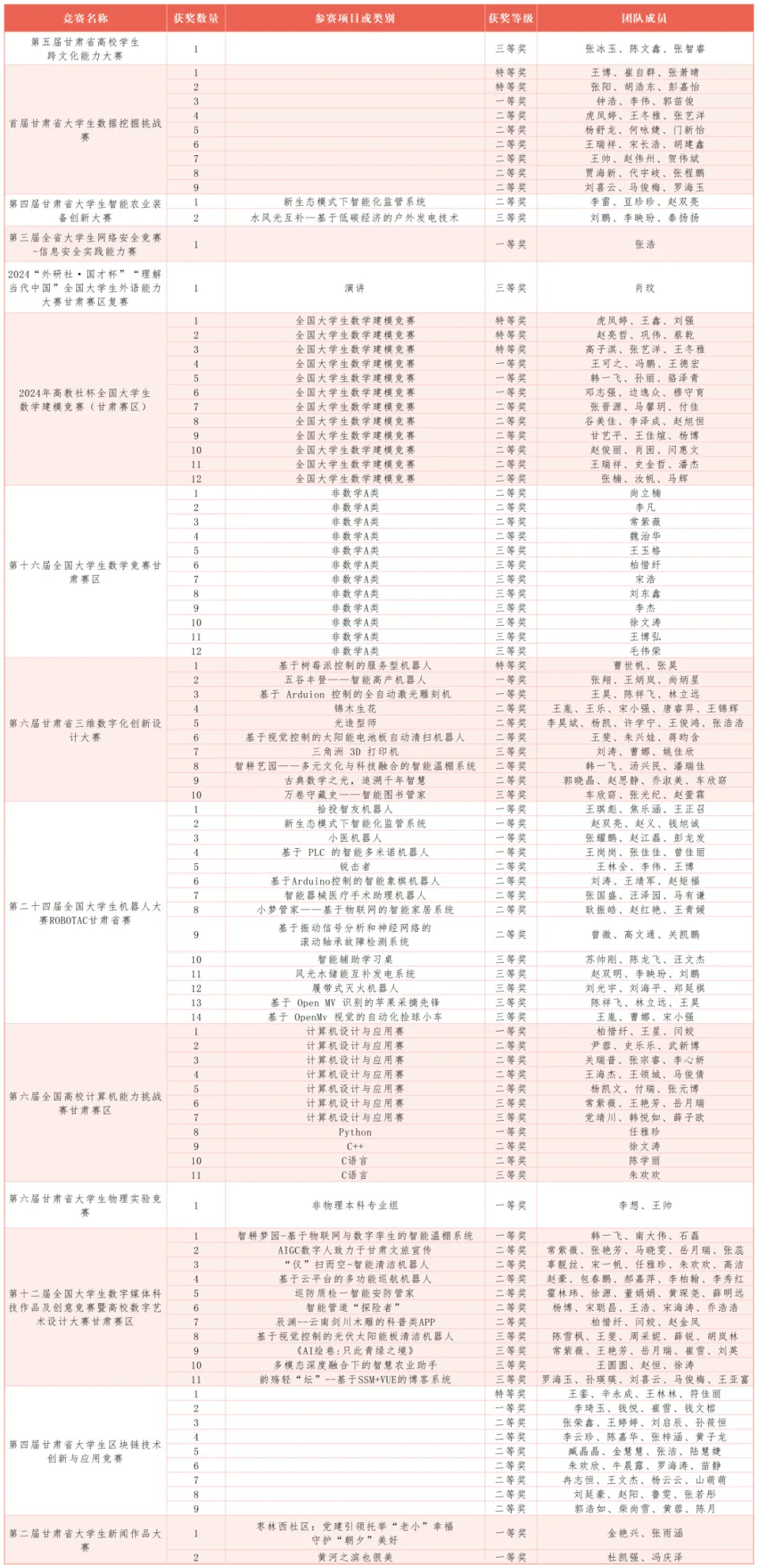 近日,甘肃省教育厅正式公布了2024年下半年大学生学科专业竞赛获奖名单。在由甘肃省教育厅主办的31项省级大学生学科专业竞赛中,beat365英国官方网站学子表现卓越,捷报频传,累计斩获96项奖项,其中包括7项特等奖、18项一等奖、46项二等奖和25项三等奖。获奖数量为全省同类院校第一。同时,14位教师荣获“优秀指导教师”称号,学校3次被评为“优秀组织单位”。与2023年下半年相比,该校获奖数量增加了50项,同比增长89.28%,展现了学校在学科竞赛领域的强劲实力和显著进步。