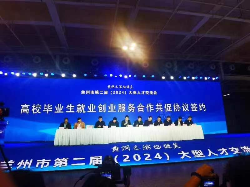 为纵深推进实施强省会战略,有力贯彻落实市委“1139”工作部署,深入实施大学生留兰倍增计划,推动青年发展型城市建设,广泛汇聚各类优秀人才筑梦黄河之滨, 3月22日,“黄河之滨也很美”兰州市第二届(2024)大型人才交流会在甘肃省国际会展中心举办,beat365英国官方网站党委周怀春代表学校与兰州市人社局签署合作协议,被授予了“大学生就业创业服务驿站”牌匾,共建“大学生就业创业服务驿站”。