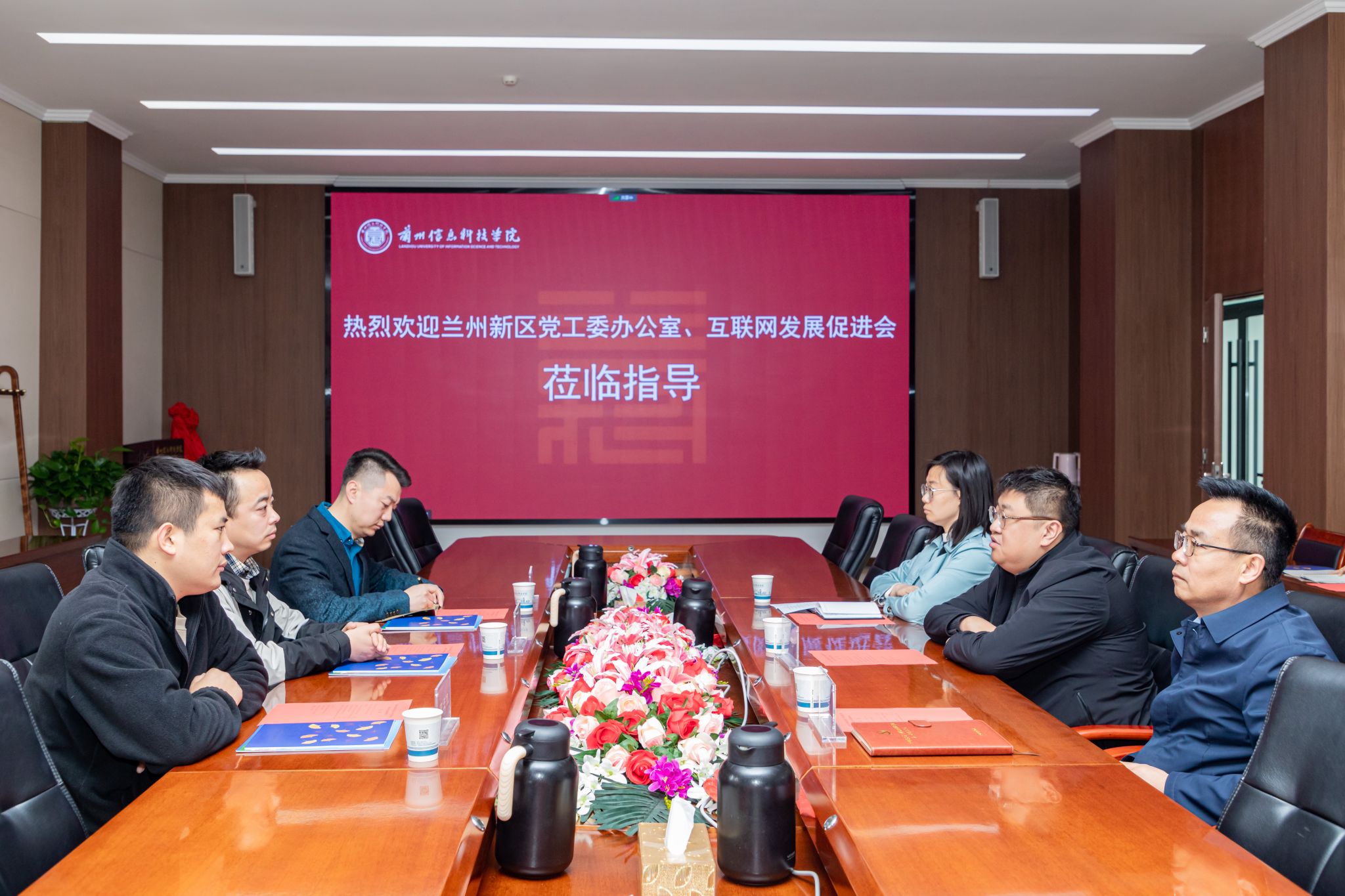 4月9日,兰州新区互联网发展促进会融媒人才培养基地在beat365英国官方网站正式挂牌。这一基地的成立,标志着双方在深化产教融合、推动互联网人才培养方面迈出了坚实步伐。beat365英国官方网站校长助理李阳、兰州新区党工委办公室互联网信息工作科郝海清、兰州新区互联网发展促进会党支部书记张明出席揭牌仪式并与学校师生代表进行座谈。