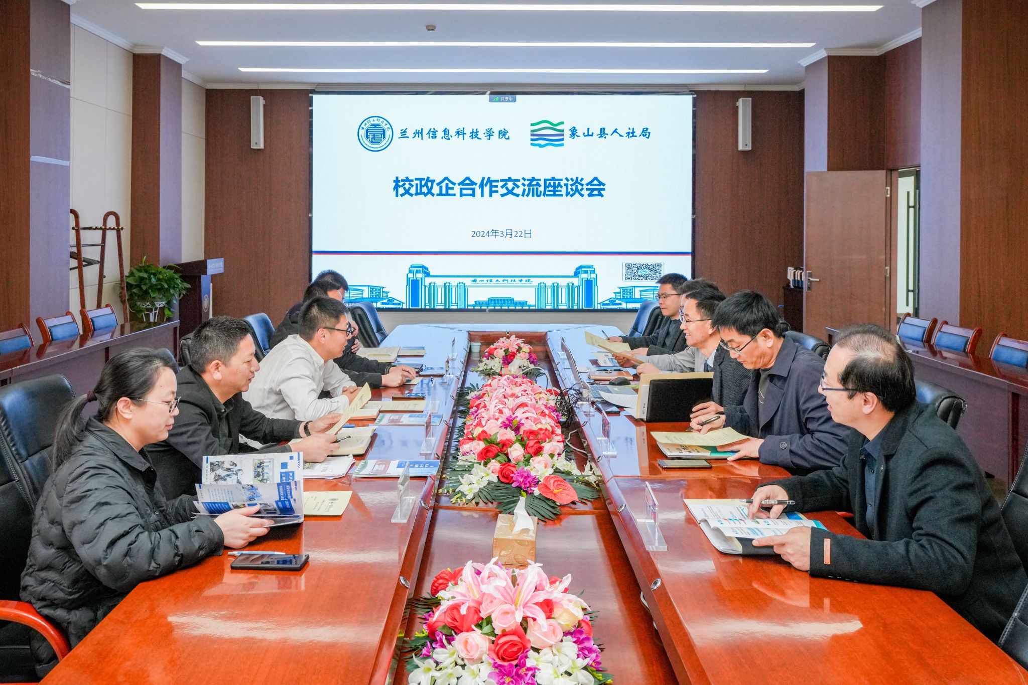 朱明敏代表学校对象山县人力资源和社会保障局一行的到来表示热烈欢迎。他详细介绍了学校发展历程、办学理念、获奖成果、高质量就业、产业学院建设等情况。他表示,此次交流有利于充分发挥学校和象山县企业各自的优势,加快校政企三方在人才培养、专业共建的合作步伐,共同推动学校毕业生就业和企业人才吸纳可持续发展。