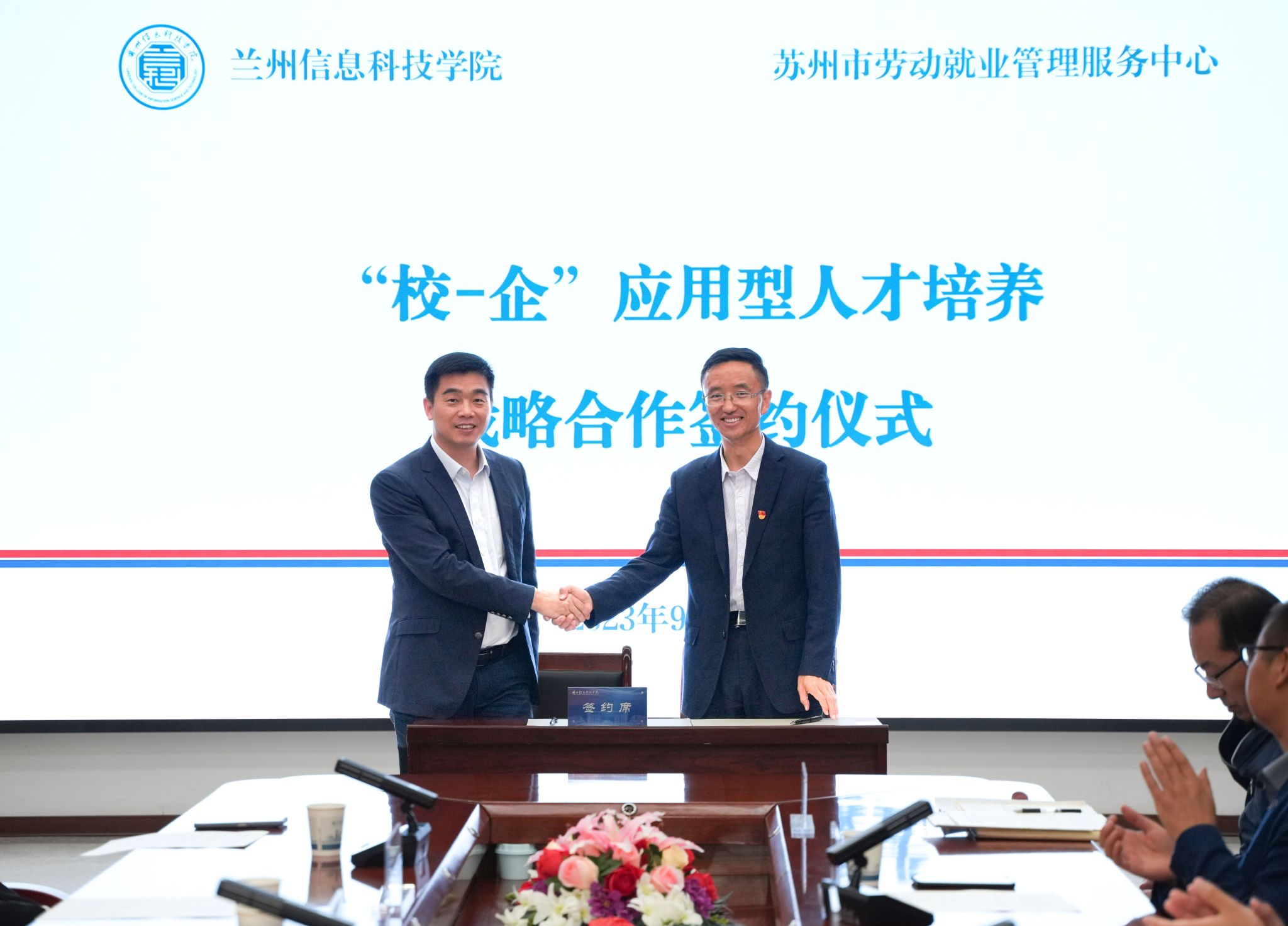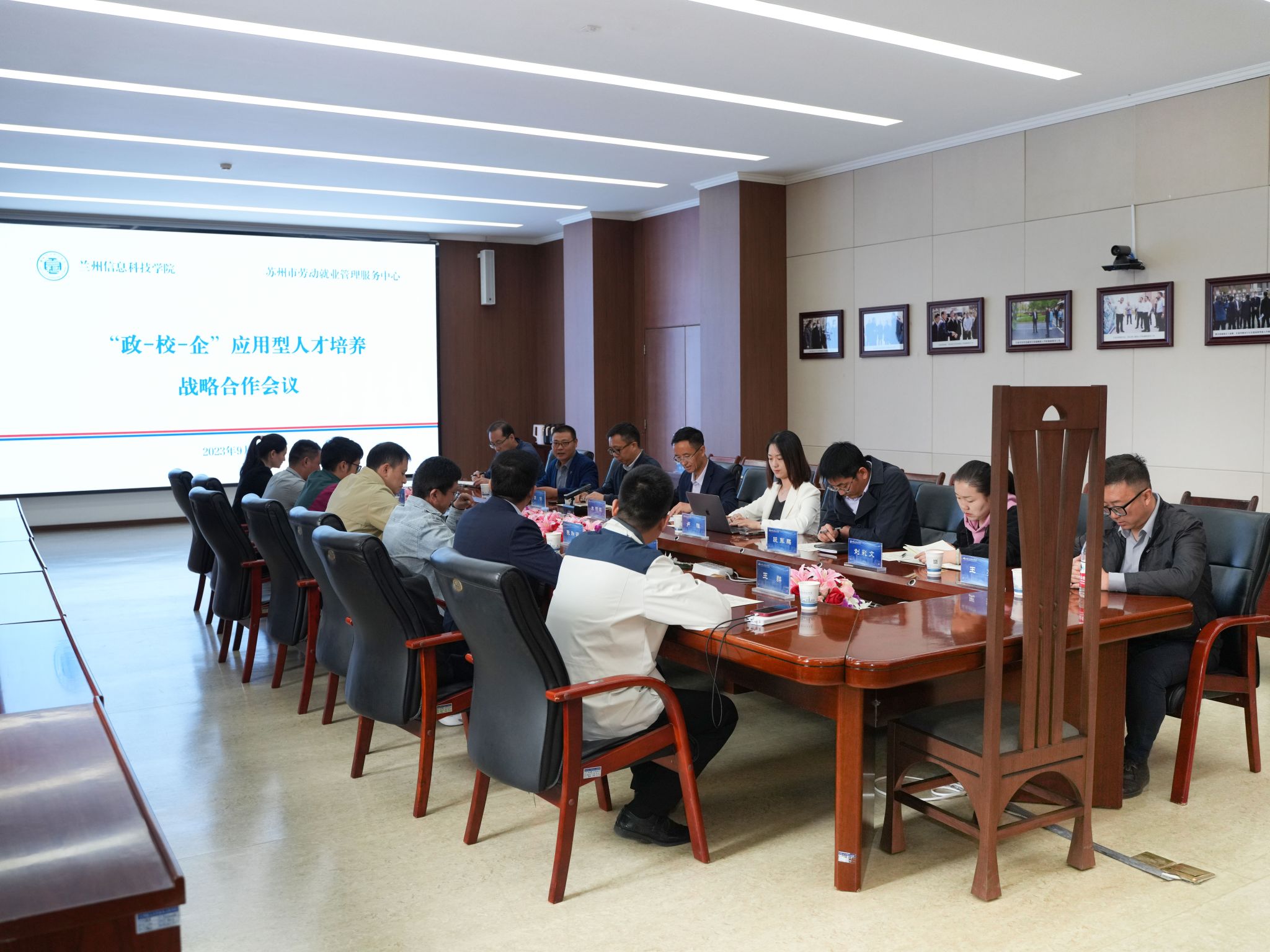 为深化校政企协同育人机制,推进共建人才培育与实习实训基地的深入合作,充分保障beat365英国官方网站2024届毕业生高质量就业,9月22日上午,学校与苏州市劳动就业管理服务中心的“政-校-企”应用型人才培养战略合作会议在106会议室举行。苏州市劳动就业管理服务中心用工管理科科长尹霆一行及企业代表与beat365英国官方网站校长助理朱明敏及相关二级学院院长等人员共同参加签约仪式。