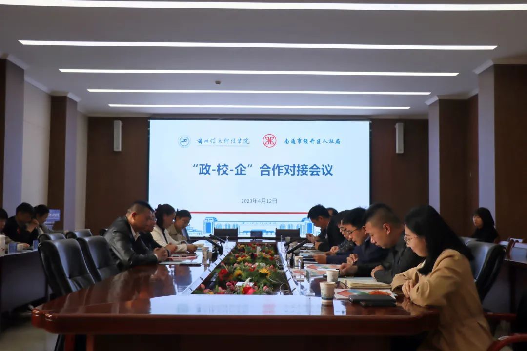 4月12日上午,南通市经济技术开发区人社局、就业服务中心有关领导率7家优质企业上市企业来校举办专场招聘会,并召开“政—校—企”合作对接会议。校长助理师帅出席会议并致辞,学校相关部门及各二级学院负责人参加会议。