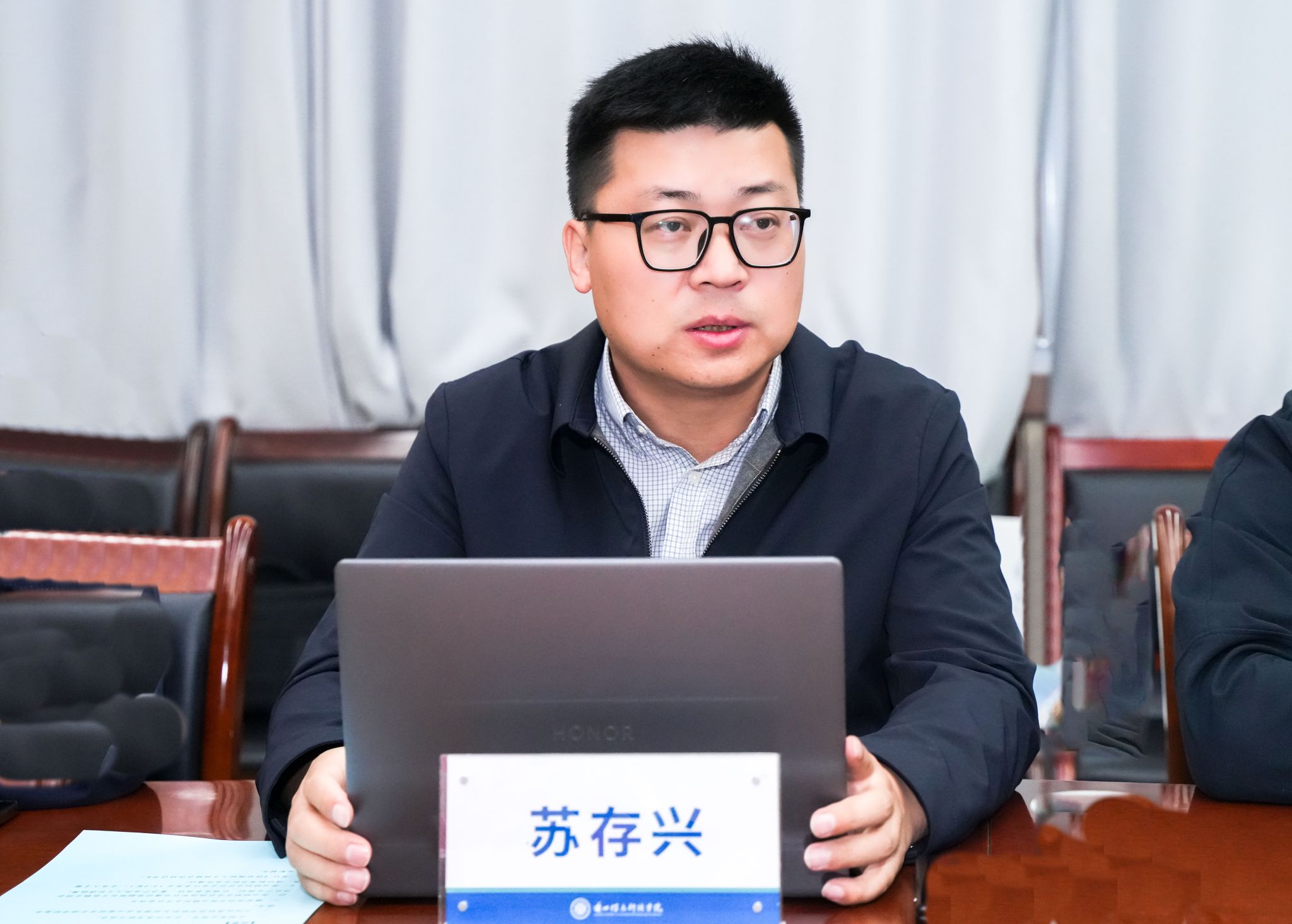 校长助理苏存兴代表学校对远道而来的合作区领导及企业代表表示热烈欢迎和衷心感谢。他在致辞中强调,学校始终坚持“以父母之心育人,帮助学生成就梦想”的办学理念,致力于培养“能吃苦、能奋斗、具备实干精神”的高素质应用型人才。建校以来,已为社会输送五万余名毕业生,初步形成覆盖智能装备、人工智能、土木工程、健康工程、数字经济等多领域的专业集群。学校高度重视产教融合,目前已与多家世界500强企业及行业龙头企业共建订单班、产业学院及博士后创新实践基地,持续推动教育链、人才链与产业链有机衔接。