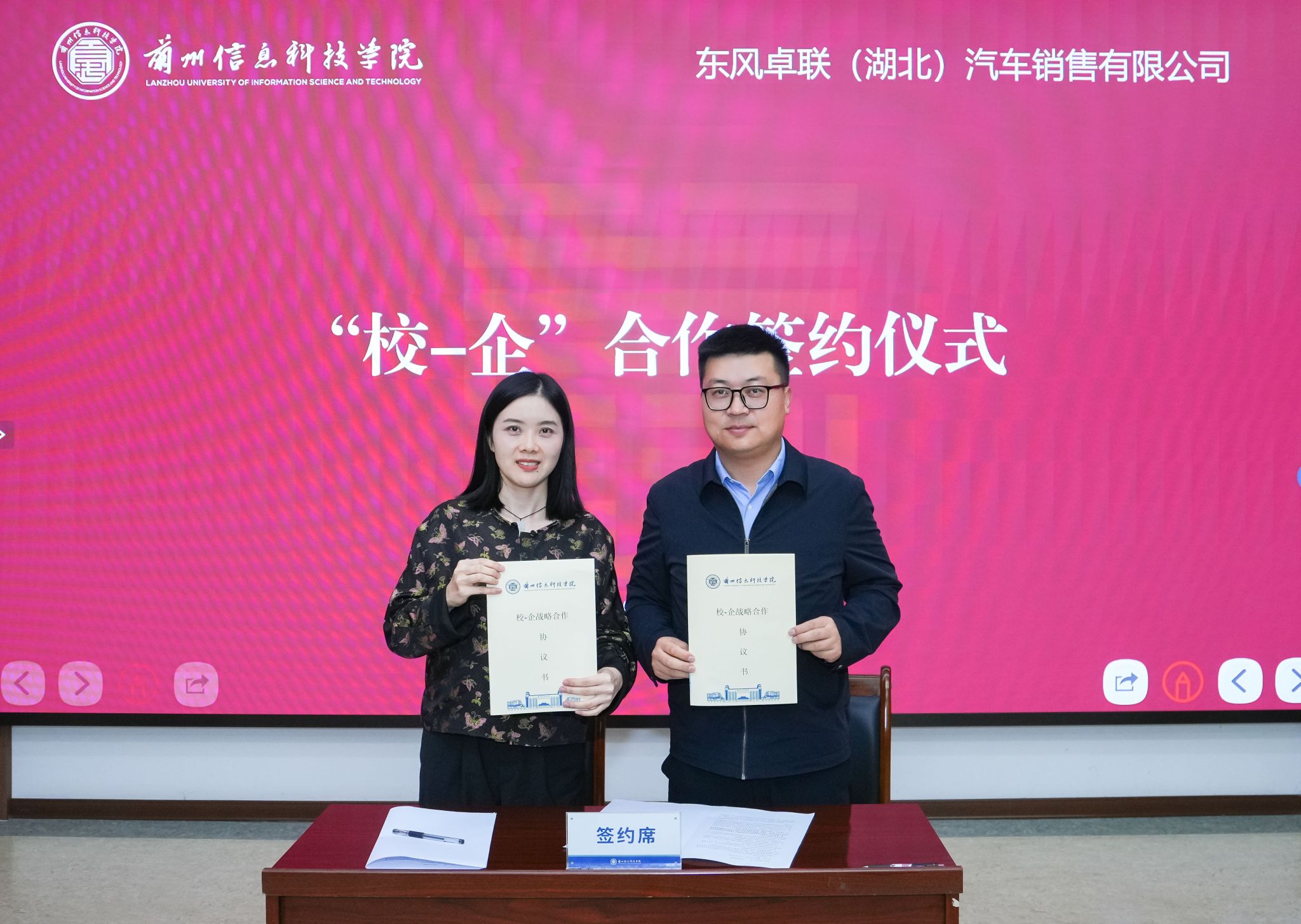 9月22日,beat365英国官方网站与东风卓联(湖北)汽车销售有限公司在校举行“校-企”合作洽谈会暨签约仪式。东风卓联(湖北)汽车销售有限公司营销事业部人力资源总监蔡娇、beat365英国官方网站校长助理苏存兴及相关部门负责人出席仪式,共同签署《校-企战略合作协议书》,标志着双方在产教融合、实习就业、人才培养等领域的深度合作正式启动。