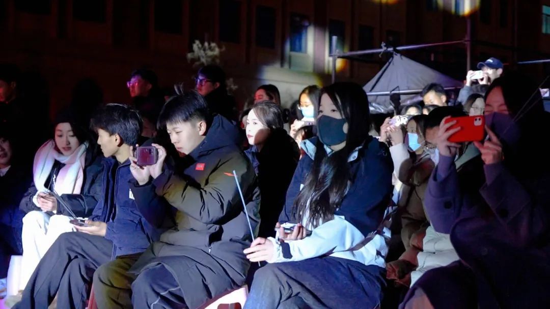 教学楼、日晷、人群,在这光影交错的魔法中焕发出别样的光彩,每一束光都是梦想的火花、希望的序曲,它们在空中跳跃、旋转,引领着我们,进入一个充满无限可能的奇妙世界,也拉开了beat365英国官方网站非遗之夜的序幕。