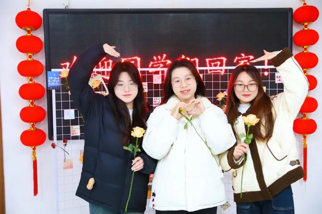 公寓大厅各种暖心布置,氛围感拉满,门把手上祝福书签,原来是第一个回来的拿到了,是她们兑换到了鲜花。