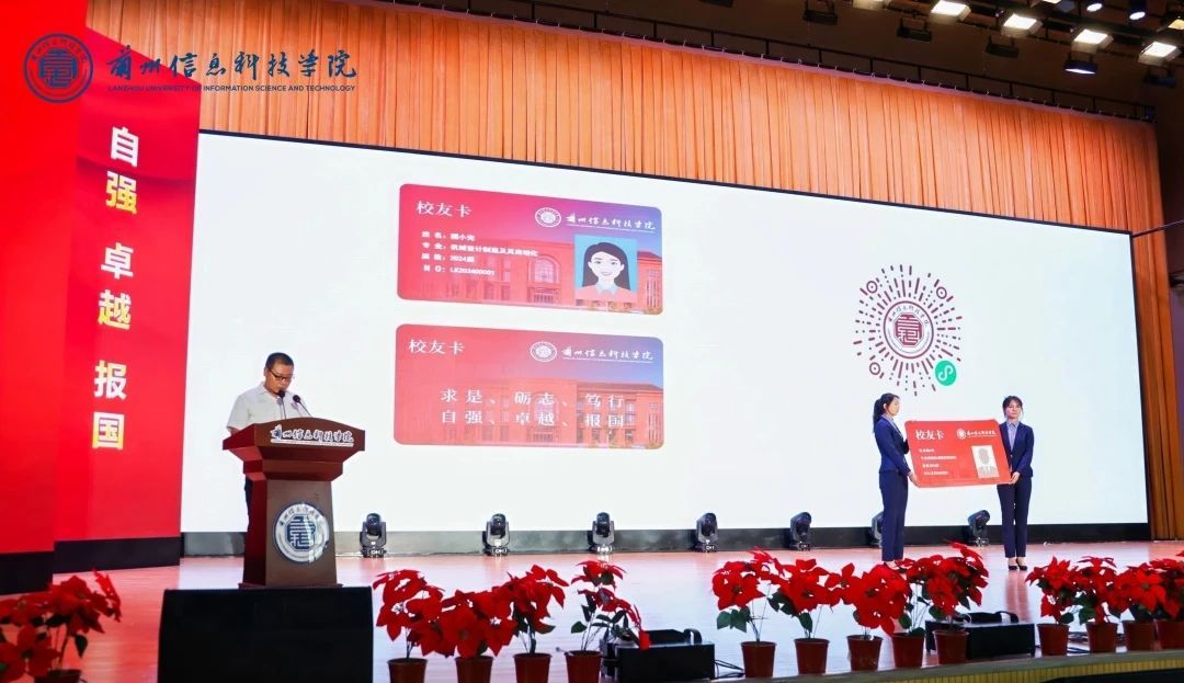 毕业生们以鲜花为媒,向到场的家长代表送上诚挚的感谢与敬意。同时进行了校友卡发布仪式,至此,同学们完成了从学子到校友的身份转变。