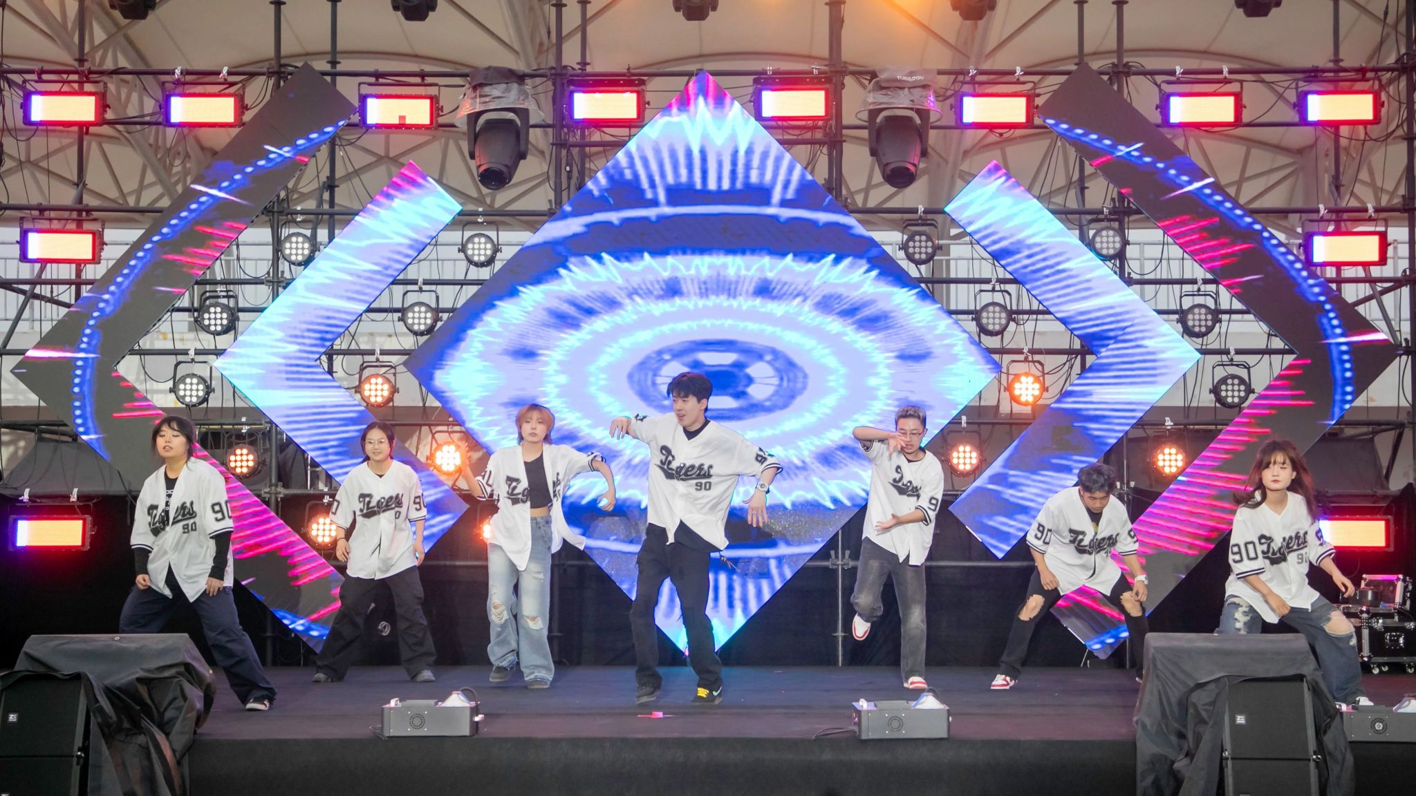 活力四溢的动作舞动着青春的旋律,灵动的舞姿引起观众们阵阵欢呼。