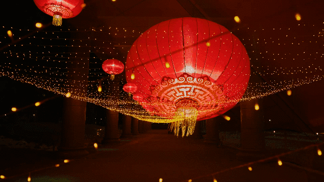 越过喷泉广场,行至文化长廊,十盏大红灯笼高高悬挂,红光映衬下,一万五千多颗闪灯融汇成“星空长廊”,似繁星点点,璀璨夺目、熠熠生辉。